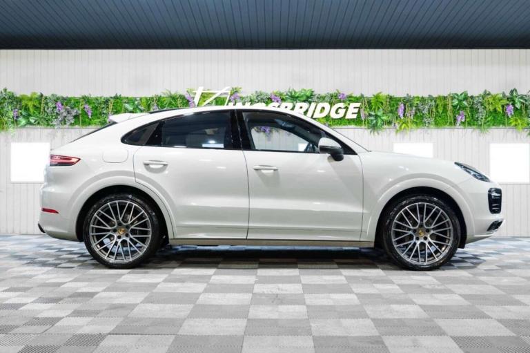 Stunning Porsche Cayenne Coupe 3.0 Turbo Platinum edition Auto 4WD Coupe Finished in sought after Crayon Grey paintwork and the optional 22"" RS wheels combined with gloss black sport design package it presents itself as a very eyecathing example of the Cayenne coupe. Having just been serviced at Porsche York (£1,100) and 4 brand new tyres. This car has just 2 owners from new, a huge specification and balance of Porsche warranty to March 2026. (extendable) The specification includes:£Heated Multifunction Alcantara Sports Steering Wheel - £119.00£Partial Leather - Black£Crayon - £1683.00£Acoustically Insulated Laminated Glass Privacy Glass - £867.00£18-Way Adaptive Sports Seats - Electric - £1014.00£ParkAssist Including Surround View - £522.00£LED Main Headlights in Black including Porsche Dynamic Light System - PDLS - £333.00£Adaptive Cruise Control Including Lane Keep Assist and Speed Limit Indicator - £1986.00£Interior Package - Black High-Gloss Finish£Airbags - Rear Side - £291.00£2+1 Rear Seat System£20in Collapsible Spare Wheel - £270.00£Adaptive Air Suspension including Porsche Active Suspension Management - PASM - £1511.00£PORSCHE Logo Painted in Matt Black including Deletion of Model Designation£22in Alloy Wheels - RS Spyder Design - wheel arch extension in body colour - £683.00Sport design package in black high glossInstrument dial whiteTinted LED taillights inc light stripPreperation for Porsche rear seat entertainmentPorsche Logo LED door courtesy lightsAmbient LightingAnalogue Clock on DashboardApple Carplay and Android AutoAutomatic Climate ControlAutomatic Headlight Activation including Welcome Home LightingAutomatic Hold FunctionAutomatically Dimming Exterior and Interior MirrorsBOSE Surround Sound SystemDigital RadioDual Sports Exhaust Tailpipes in Gloss BlackElectrically Adjustable - Folding and Heated Exterior Mirrors Head Up DisplayHeated WindscreenIntegrated Porsche 4D Chassis ControlKeyless Entry and DriveLED Interior Lighting ConceptLED Tail Lights with Three-Dimensional Lighting Graphics Panoramic Roof with Fixed Glass PanelParkAssist - Front and Rear with Visual and Audible WarningPorsche Active Aerodynamics - PAA - with Adaptive Roof SpoilerPower Steering PlusPowered TailgateSeats - Heated Front & rear Side Window Trims - Black High GlossSideskirts in Matt BlackSport Chrono Package including Mode SwitchWe are rarely beaten on finance. We work with all major high-street lenders alongside a carefully selected panel of specialist providers to secure the most competitive package tailored to your circumstances. If you choose to arrange finance elsewhere rather than through Kingsbridge, a £599 administration fee will apply to cover processing and compliance documentation.Ask about our full paint correction service and Gyeon ceramic protection packages. We offer bespoke preparation options including paint protection film (PPF), vehicle wrapping, trackers, dash cams and Ghost immobilisers.A £199 Vehicle Assurance Charge applies to all vehicles. This may be included within the advertised price or added separately depending on the platform you have seen the vehicle on.Specification Notice: Vehicle specifications listed may differ from the actual specification fitted. If any feature is essential to your purchase decision, you must confirm this with us prior to committing to buy.