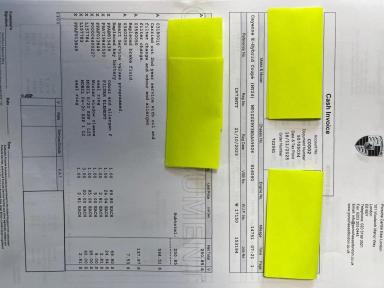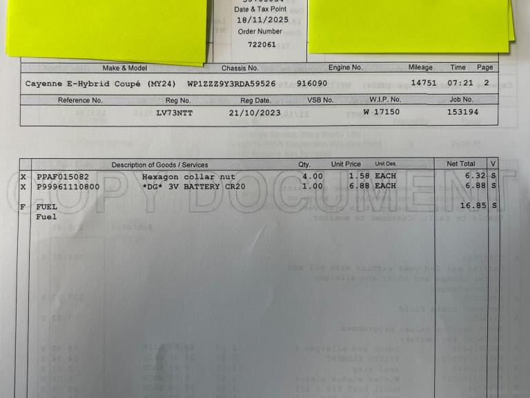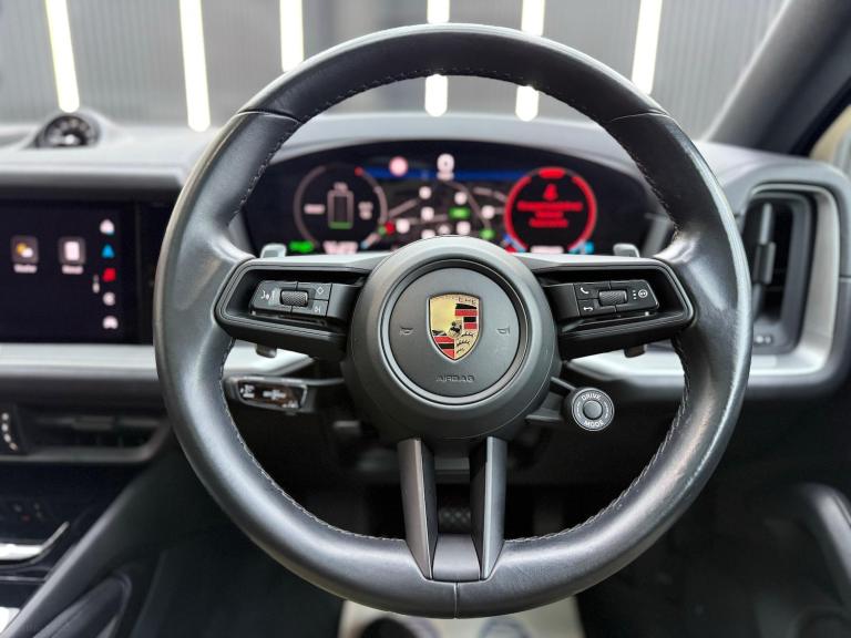 EPS Cars brings you this 2023 Porsche Cayenne V6 E Hybrid presents an exceptional ownership proposition with its single owner and comprehensive full service history, including a recent service in November 2025 at 14751 miles, ensuring it is in excellent condition. This four wheel drive model boasts a 3.0 litre petrol plug in hybrid engine, meeting Euro 6 emission standards, and benefits from an MOT valid until October 2026. It is fitted with striking 21 inch Cayenne Exclusive Design alloy wheels in Black High Gloss, a Passenger Display, full body PPF in Satin and a Head Up Display for enhanced driver convenience. Further enhancing the driving experience, this Cayenne features automatic headlight activation with welcome home lighting and a premium BOSE Surround Sound System. With only 15000 miles on the clock, this vehicle is remarkably low mileage for its age, indicating less wear and tear compared to other similar models. The generous boot space offers practicality for everyday use and longer journeys, making it a versatile choice for those seeking performance, luxury, and utility. Full Options Included: Airbags, Cruise Control, Pedestrian Detection System, Fog Lights, Automatic Lights, Antilock Braking System, Central Locking, Tyre Pressure Monitoring System, Isofix Child Seat Mounting System, Parking Sensors Front, Parking Sensors Rear, Electronic Stability Control, Distance Monitoring System, Anti Slip Control, Automatic Windscreen Wipers, Rear View Camera, Head Up Display, Automatic Lane Detection, Alarm, Immobiliser, Wifi, DAB Radio, CD Player, Premium Audio, Bluetooth Audio, Voice Control, Satellite Navigation, MP3, Bluetooth Telephone, USB Audio, Multi Function Steering Wheel, Power Steering, Electric Windows, Electric Mirrors, Heated Mirrors, Keyless Start, Start/Stop, Hill Start, Tinted Windows, Air Conditioning, Climate Control, Dual Zone Climate Control, Sports Seats, Electrically Adjustable Seats, Leather Seats, Heated Seats, Panoramic Sunroof, Sports Pack, Alloy Wheels, Tiptronic Transmission. Buying from EPS Cars Limited ensures flexibility and convenience, offering video viewings, collection appointments, or delivery of the vehicle to any location in the UK. Each car is fully inspected for your reassurance. We also offer assistance with part exchanges and financing, making your purchase seamless. As a family-run business, we pride ourselves on exceptional service and customer satisfaction, as evidenced by our awards and glowing reviews.