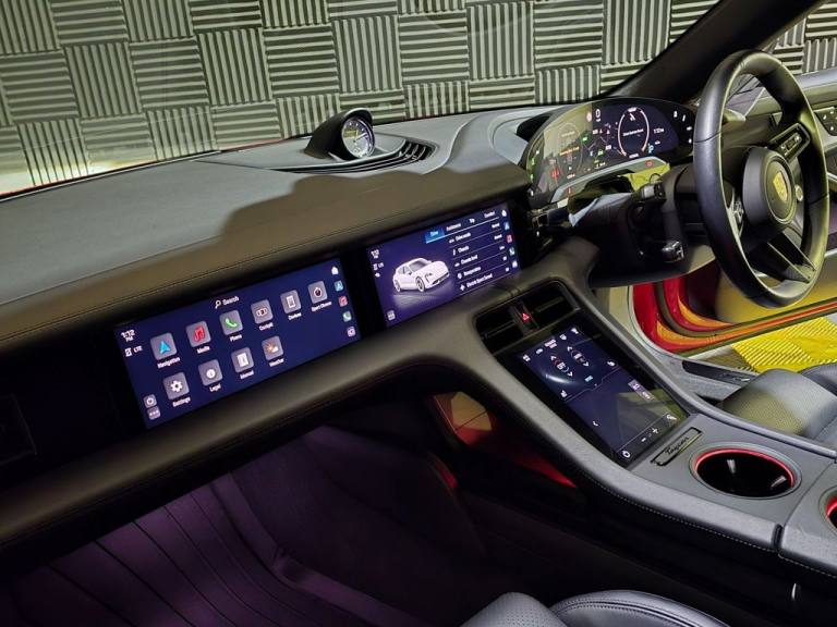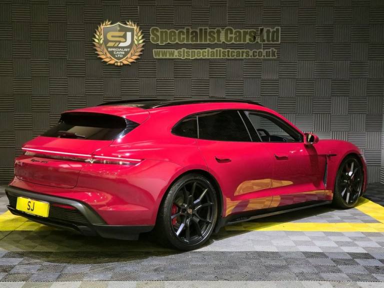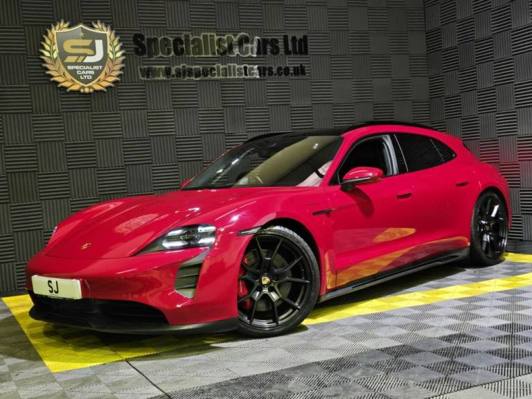 2023 / 73 Porsche Taycan GTS Turismo Performance Plus. Finished in Cost Option Carmine Red with Full Smooth Finish Black Leather. 14000 Miles Only, FPSH, Porsche Warranty Until 11/26. Over £20K in Factory Options Inc : 21" Black Alloys, Panoramic Roof, 18 Way Adaptive Sports Seats, Bose Sound, Matte Carbon Interior Pack, Matrix Headlights with PDLS Plus, Heated Front and Rear Seats, Red Calipers, Heated Carbon Trim Steering Wheel, 360 Surround View, Ambient Lighting, Advanced Climate Control, Passenger Display, Porsche Design Clock, 22KW A/C On Board Charger, Powered Electric Port, Roof Lining in Racetex, Adaptive Cruise Control, Black Aluminium Roof Rails, Privacy Glass, Electric Folding Mirrors, Finance and Part Exchange Available..Porsche Warranty Until 11 / 26, Panoramic Sunroof, Passenger Display, 22KW On Board AC Charger, Bose Surround Sound, Smooth Finish Leather - Black, Ambient Lighting, Automatically Dimming Exterior and Interior Mirrors, Advanced 4-Zone Climate Control, LED Matrix Main Headlights in Glacier Ice Blue Including Porsche Dynamic Light System Plus, Roof Lining Grab Handles in Race-Tex, Heated Steering Wheel with Carbon Trim - For Leather Interior with Sport Chrono, Carmine Red, Passenger Display, BOSE Surround Sound System with 14 Speakers Including Subwoofer and a Total Output of 710 Watts, ParkAssist Including Surround View, Adaptive Cruise Control, 22kW On-Board AC Charger, Comfort Access, Seat Heating - Front and Rear, Preparation for Rear Bike Carrier, Porsche Crest on Headrests, Interior Package - Carbon, 4+1 Seats System, Wheels Painted in High Gloss Black, Windscreen with Grey Top-Tint, Privacy Glass, Rear Screen Wiper Trim Painted in High Gloss Black, Roof Rails - Black Aluminium, Porsche Logo LED Door Courtesy Lights, Electrically Folding Exterior Mirrors, Fixed Glass Panoramic Roof, Electric Charging Cover, 21in Alloy Wheels - RS Spyder Design Wheels, 11kW AC On-Board Charger, 12v Electrical Socket in Rear Luggage Compartment, 12v Electrical Socket in the Centre Console Storage Compartment, 16.8in Curved Display, 18-Way Adaptive Sports Seats - Front with Memory Package, 2 USB-C Charge Ports in the Rear, 2 USB-C Connectivity and Charge Ports in the Centre Console Storage Compartment, 20in Alloy Wheels - Taycan Turbo S Design, 3-Point Automatic Seat Belts with Pre-Tensioners - Front and Outer Rear Seats and Front Force Limiter, 4-Point LED Daytime Running Lights, 50kW DC On-Board Charger for use of Public Charging Stations with a voltage of 400V, ABS - Anti-lock Brake System, Accent Package in Black, Active Bonnet System, Active Carbon Fine Dust Filter, Adaptive Air Suspension including Porsche Active Suspension Management - PASM, Advanced 2-Zone Climate Control, Aluminium Double-Wishbone Front Axle, Aluminium Multi-Link Rear Axle, Auto-Deploying Door Handles, Automatic Headlight Activation including Welcome Home Lighting, Automatic Hold Function, B-Pillar Clothes Hook on Driver and Passengers Side, Bonnet - Tailgate - Doors - Side Sections - Front Wings in Aluminium, Brake Calipers - Red, Brake Pad Wear Indicator, Bumpers Comprising High-Strength Cross Members and Two Deformation Elements Each with One Threaded Fixture Point for Towing Eye Contained in