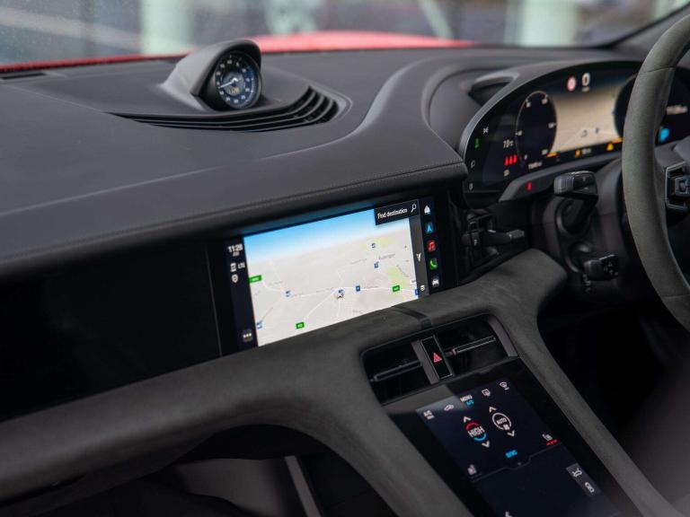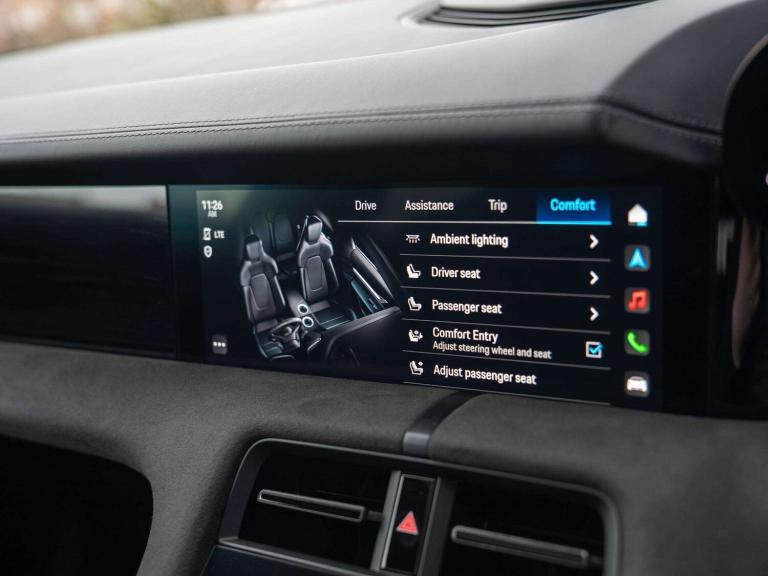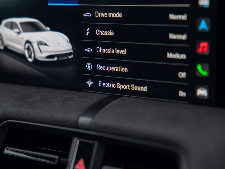 21-inch RS Spyder Design wheels in satin black (48D), 41 Seats (5KA), Adaptive Air Suspension including Porsche Active Suspension Management (PASM) (1BK), Ambient lighting (QQ1), Apple® CarPlay (9WT), Automatically dimming exterior and interior mirrors (4L6), Burmester® 3D High-End Surround Sound System (9VJ), Comfort Access (4F2), Electric charging cover (2W9), Electric folding exterior mirrors (6XV), Lane Keep Assist (6I3), LED Matrix Main Headlights Glacier Iceblue including Porsche Dynamic Light System Plus (PDLS Plus) (8JU), Light Strip with 'PORSCHE' Logo Black (8SP), Panoramic Roof, fixed (3FG), ParkAssist including Surround View (KA6), Performance Battery Plus (J9K), Porsche Electric Sport Sound (GM3), Porsche Torque Vectoring Plus (PTV Plus) (GH3), Power steering Plus (1N3), Privacy glass (VW1), Rear wiper (8M1), Rear-axle steering including Power steering Plus (0N5), Roof Lining Race-Tex (6NC), Seat heating (front and rear) (4A4), Side window trims in black (high-gloss) (QJ4), Sport Chrono Package (8LH), Steering Wheel Rim Race-Tex including Steering Wheel Heating (i.c.w. Sport Chrono Package and Leather Interior) (1XF), SportDesign front apron (2D4)