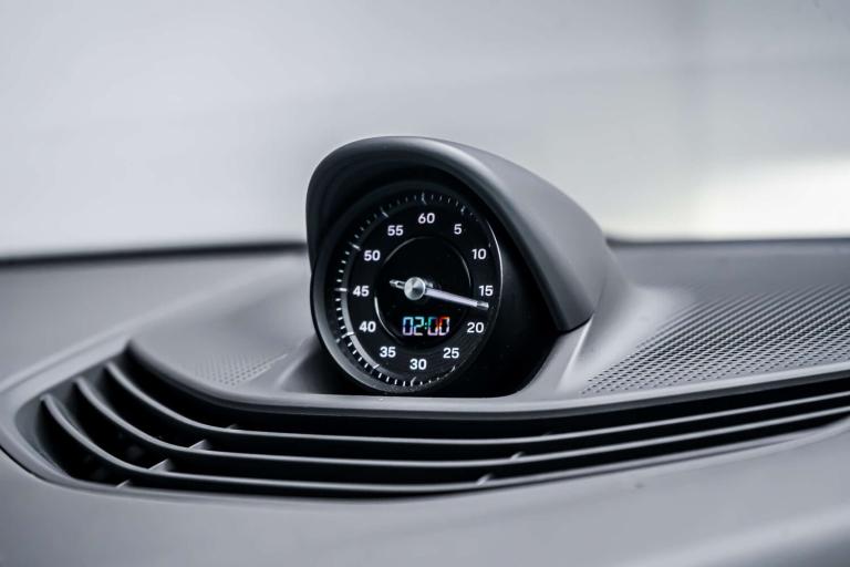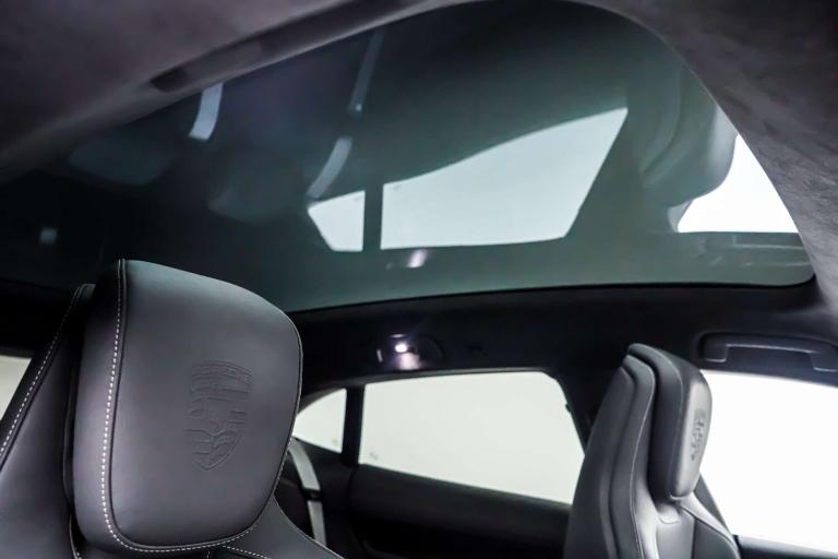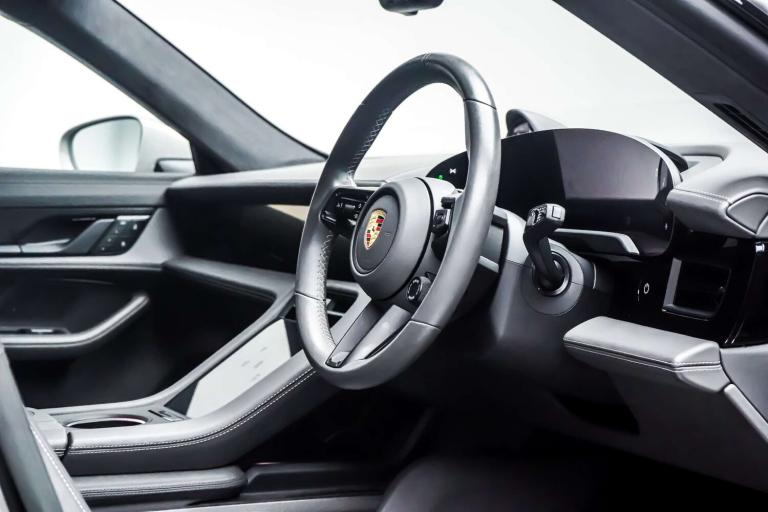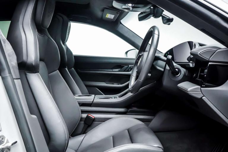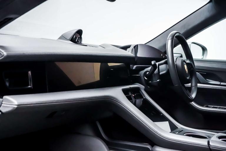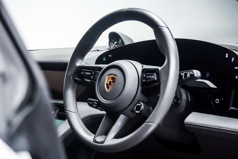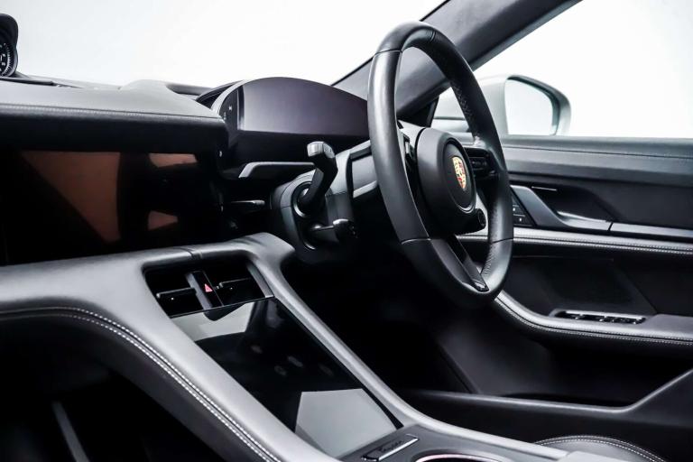 This Porsche Taycan is finished in Crayon and this vehicle comes with the following specification - Panoramic Roof Sport Chrono Package Privacy Glass Side Window Trims in High Gloss Black Roof Rails in Black Aluminium ParkAssist Including Surround View Door Handles Painted in Black Exterior Mirror Lower Trims Painted and Mirror Base Painted in High-Gloss Black Porsche Crest on Headrests Seat Belts in Crayon Smooth Finish Leather in Slate Grey.