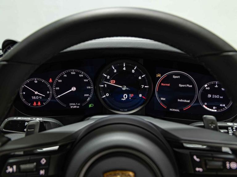 Finished in Jet Black metallic, featuring a full Black leather interior. This one-owner Porsche 911 Carrera (992) is offered in immaculate condition, having covered only 9,100 miles from new. The car comes complete with the remainder of the manufacturer warranty until March 2027We now accept CryptocurrencyOPTIONAL FEATURES20/21-inch Carrera Classic wheelsBOSE Surround Sound SystemElectric slide/tilt glass sunroofSport Chrono Package including Mode Switch Sport Chrono stopwatch instrument dial in BlackSports exhaust system, tailpipes in BlackSports seats plus, electrical 4 waysPower steering plusHeated steering wheelPorsche Crest on HeadrestsPrivacy glassElectric folding exterior mirrorsAmbient LightingParkAssist including reverse cameraMetallic paintSTANDARD FEATURESModel designation on rear in lightsilverContrast stitching in CrayonFull leather packageFloor matsPorsche Active Suspension Management (PASM)Particle/pollen filterHeated front seatsKeyless goAutomatically dimming interior and exterior mirrorsInterior package Diamar darksilverRear lid with vertical slats in high gloss BlackPorsche Vehicle Tracking System Plus (PTVS Plus)Door sill guards in aluminium with model designationLane keeping assistLED main headlightsCruise controlSide window trims in high gloss Black