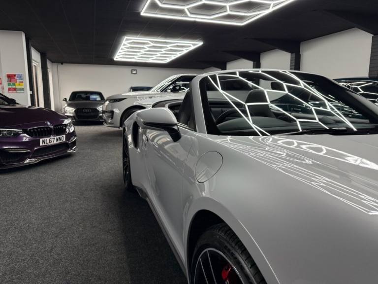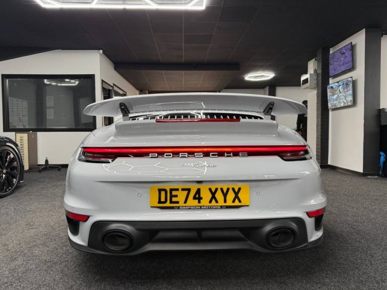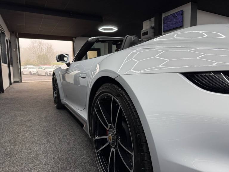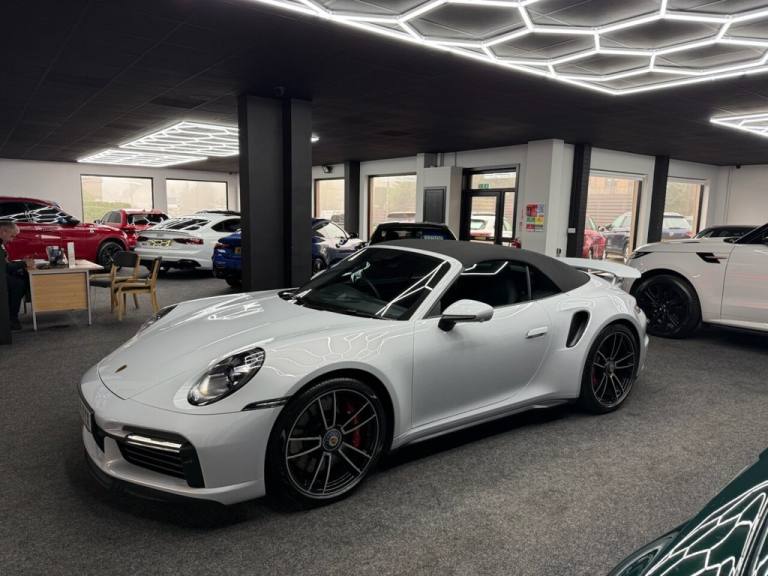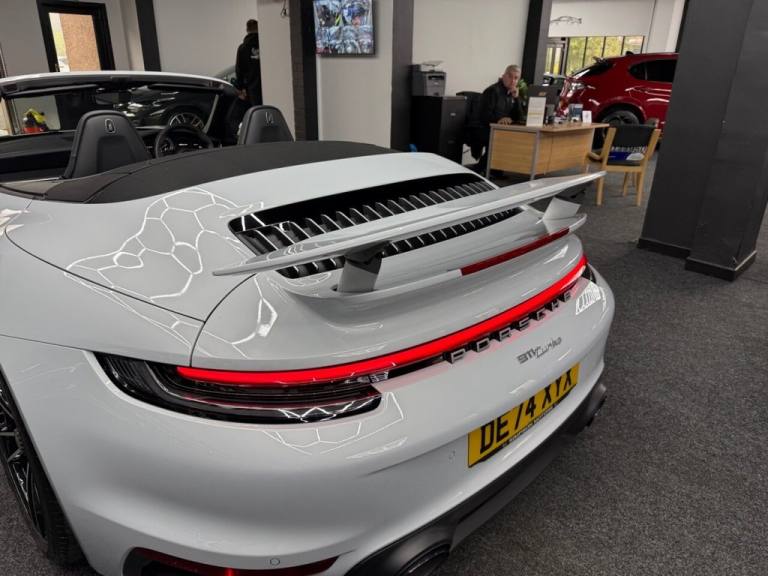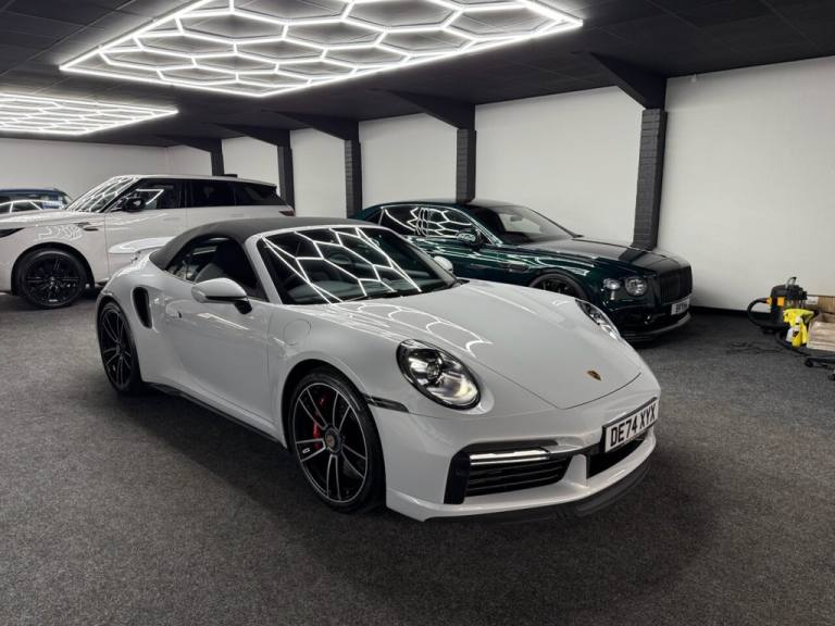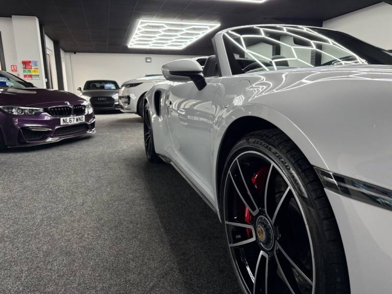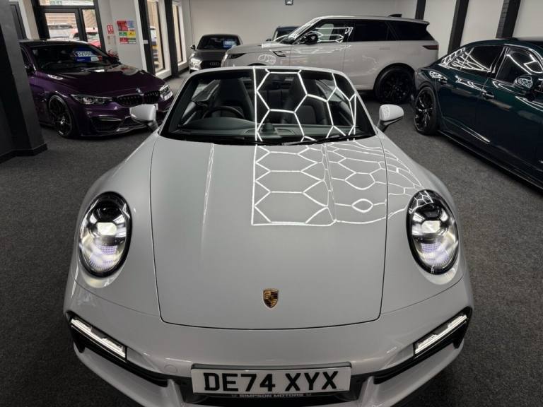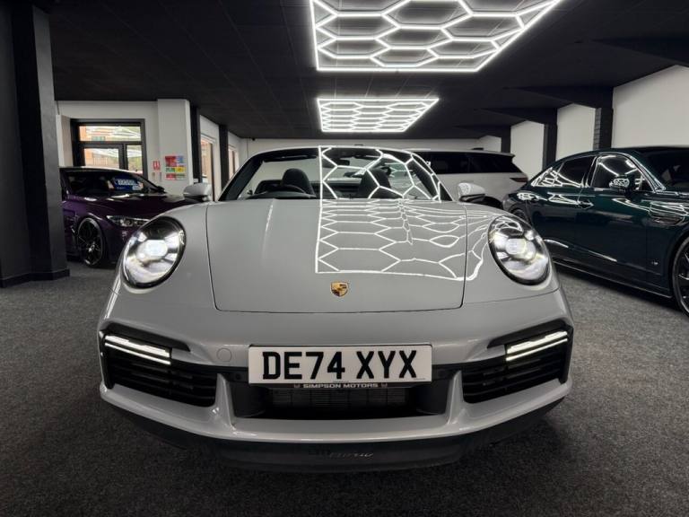 Here we have a Stunning Porsche 911 (992) Turbo Cabriolet PDK 4WD finished in the iconic Ice Grey Metallic, a perfect colour for the Turbo that highlights the lines of the 992 beautifully and looks incredible in all light. This example has covered only 6,700 miles from new and represents a huge saving compared to buying new, with an original list price of approximately £186,000. This is not a basic car either — it was specified exceptionally well from factory with almost £17,000 worth of optional extras, making it an extremely desirable example for the next owner. The Turbo Cabriolet is the ultimate all-round supercar, combining effortless performance, comfort and usability, with the added enjoyment of open-top driving and the confidence of Porsches superb 4WD system. The car comes complete with the Porsche leather book pack and 2 keys. We have also carried out a full HPI check to confirm the vehicles history and mileage, and we are more than happy to share a copy of the certificate with any prospective buyer for complete peace of mind. If you would like to arrange a viewing or test drive please contact us on 01383 730529. We can also offer G Techniq ceramic coatings for £399 — please let us know if you would like this applied. ABOUT US - Simpson Motors is a family run business now on its second generation of Simpsons, The business was originally established in 1980 by Raymond Simpson at a smaller site just down the road from our current location, Raymond quickly outgrew that site and moved to our current premises which has around 4 times the capacity of the original site. Bryan Simpson, Raymonds son joined the business in 2006 at the age of 15 and followed his father closely learning the family trade, He now runs the business and has continued to grow while providing the high level of standards our customers expect and know us for. All our stock is carefully selected either purchased directly from the public or through trade contacts we have built up over the years. All stock goes through an extensive history & mechanical checks before being offered for sale. We are of course more than happy to share the certificates with any prospective buyer. .Porsche Crest on Storage Compartment Lid, Electrically Folding Exterior Mirrors, Front Axle Lift System, ParkAssist System including Surround View, Door Sill Guards - Carbon Matt - Illuminated, GT Sport Steering Wheel in Leather - Heated, Light Design Package, Porsche Design Subsecond Clock, Wheel Centres with Full-Colour Porsche Crest, Sports Exhaust System with Tailpipes in Black, Convertible Top Colour - Black, Tinted LED Main Headlights with Matrix Beam including Porsche Dynamic Light System Plus - PDLS Plus, 20in Front 21in Rear Alloy Wheels - 911 Turbo S, Protection Foil - Front, Ice Grey, 2 USB-C Ports in Centre Console Main Storage Compartment Lid - 12V Socket in Passenger Footwell, BOSE Surround Sound System, Cruise Control, Electromechanical Power Steering with Variable Steering Ratio and Steering Pulse Generator, Embossed Leather on Front Seat Centres - Front Side Bolsters - Front Seat Head Restraints, Front Apron with Side Air Intakes - Active Cooling Air Flaps and Air Blades in Black, Fully Electric Sports Seats - 14 Way with Memory Package, GT Sport Steering Wheel in Leather, Heated Rear Screen, Instrument Cluster with Central Analogue Rev Counter - Two 7in TFT Display, Integral Electrically Powered Wind Deflector, Keyless Drive, Memory Function - Both Exterior Mirrors - Steering Column and Drivers Seat Position as well as other Personalised In-Car Settings, Multifunction Steering Wheel with Shift Paddles and Manual Height-Reach Adjustment, ParkAssist - Front and Rear with Reversing Camera, PASM - Porsche Active Suspension Management, PCM - Porsche Communication Management - Include Navigation, PDK Gear Selector with Automatic Mode - Manual Gear Selection via Shift Paddles on the Steering Wheel, Porsche Active Aerodynamics - PAA with Active Front Spoiler Active Cooling Air Intake Flaps and Active Rear Wing, Porsche Stability Management - PSM Including ABS with Extended Brake Functions, Porsche WET Mode, PTM - Porsche Traction Management, PTV Plus - Porsche Torque Vectoring Plus, Rear Apron and Rear Apron Lower Section with Integrated Tailpipe trims and Intercooler, Rear Axle Steering, Seats - Heated Front, Side Air Intakes at the Front with Active Cooling Air Flaps and Air Blades in Black, Six-Piston Closed Type Aluminium Monobloc Fixed Brake Calipers at Front and Four-Piston Closed Type Aluminium Monobloc Fixed Brake Calipers at Rear - Brake Calipers with Red Finish, Smartphone Integration - Apple Carplay and Android Auto, Sport Chrono Packa