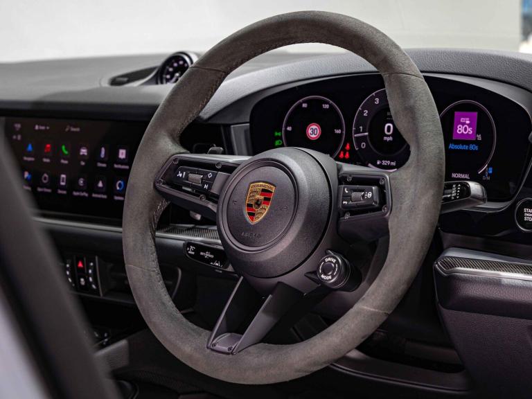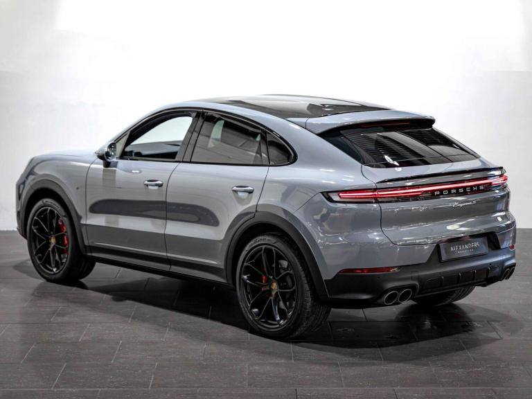 Finished in Arctic Grey, featuring a Black leather interior with classic checked fabric seat centres. This Porsche Cayenne S Coupe is offered in immaculate condition, having covered only 10,900 miles from new. This is a facelift model, with the renowned 4.0-Litre twin-turbocharged V8 which produces 469bhp and 600Nm of torque. The car comes complete with the remainder of the manufacturer warranty until July 2027. We now accept CryptocurrencyOPTIONAL FEATURESBlack Lightweight Sports Package to include:22-inch GT Design wheel painted in Matt BlackLightweight carbon roofSportDesign front apronMatt Black Air Intake GrillesMatt Black AirbladesSportDesign lower valance in Matt BlackSportDesign wheel arch mouldings in Matt BlackSportDesign Sideskirts in Matt BlackSportDesign door sidebars in Matt BlackSportDesign rear apron in Matt BlackPartial leather interior in Black with fabric seat centres with classic checked patternDiffuser trims in carbonCarbon interior trim packageHeated GT Sports steering wheel in Race-TexRoof Lining in Race-TexPrivacy GlassSTANDARD FEATURESMatrix LED headlightsLED taillights including light stripElectric sports seatsSound package plusSport Chrono Package Exhaust System in brushed stainless steelHeated front seatsSide Window trims and front inlays in High Gloss BlackRoof Spoiler in exterior colour Door handles painted in exterior colourPower Steering PlusPorsche Active Suspension Management (PASM)Red brake calipersAutomatically dimming interior and exterior mirrorsElectrically adjustable and heated folding exterior mirrorsParkAssist front and rear including Surround ViewLane Keeping AssistComfort AccessSoft-close doorsAmbient Lighting