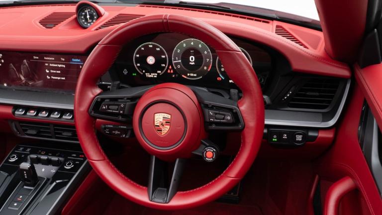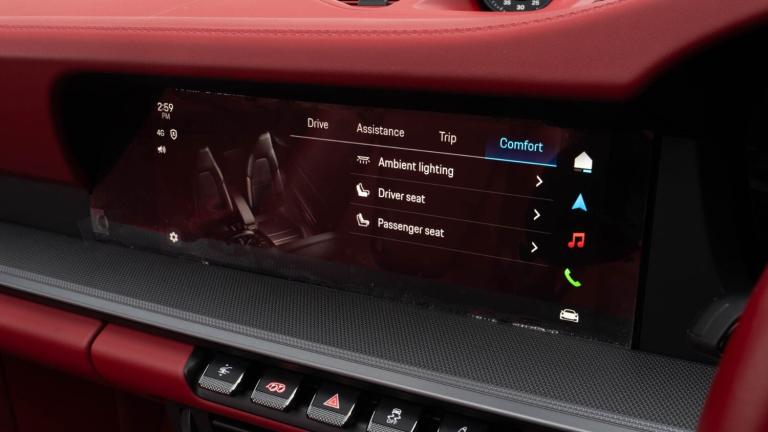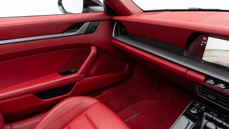 ..[Optional Extra] Ice Grey Metallic, [Optional Extra] Sport Chrono Package Incl. Porsche Track Precision App, [Optional Extra] Lifting System Front Axle, [Optional Extra] Sports Exhaust System (Tailpipes In Silver Colour), [Optional Extra] Heated GT Sports Steering Wheel Leather, [Optional Extra] Model Designation Painted In Black (High-Gloss), [Optional Extra] Porsche Crest On Headrests, [Optional Extra] Windscreen With Grey Top-Tint, [Optional Extra] Side Model Logo Black, [Optional Extra] Seat Belts Bordeaux Red, [Optional Extra] Electric 4 Way Sports Seats Plus, [Optional Extra] Passenger Footwell Storage Net, Apple CarPlay,Automatic start/stop system,Driver awareness detection,Emergency call systems eCall and bCall,Gear indicator in rev counter,Navigation High,Smartphone compartment with wireless charging up to 15 W,Sports and WET Mode,Stationary management with HOLD function,Voice control,Warn and brake assist including pedestrian protection,3.0 liters 6-cylinder boxer engine with twin-turbo,63 litre fuel tank,8 Speed Porsche Doppelkupplung (PDK),Porsche Active Suspension Management (PASM),Porsche Torque Vectoring Plus (PTV Plus),Rear wheel drive,Two gasoline particulate filter,DAB Digital radio,3rd brake light,Automatic headlight activation including welcome home lighting,Automatically dimming interior and exterior mirrors with integrated rain sensor,Door handles painted in exterior colour,Electric folding door mirrors,Fuel/charging cover,Heated rear windscreen,LED daytime running lights,Model designation on rear trim in Light silver,Rear boot,Rear diffusor in louvered design,Rear lid grille with vertical slats in high gloss black,Trim on side skirts in black,Windscreen washer system with aero wiper blades and washer jets,2 seat bench in 2nd row,Delete quilting,Deletion of model logo embossed on headrests,Driver and front passenger illuminated vanity mirrors,Front and rear head restraints,Heated front seats,Hood lining in black fabric,ISOFIX fastening system,Leather door panel and central armrests,LED footwell lights,LED glove compartment lighting,LED ignition light,LED luggage compartment lighting,LED orientation light,LED reading lights,Lockable glove compartment,Particle/pollen filter with active carbon filter,Single front passenger seat,Steering wheel with manual fore/aft and height adjustment,Two zone auto climate control,USB-C fast charging,Light design package - 911,Sound pack plus - 911,Airbags,Brake system with brake calipers in