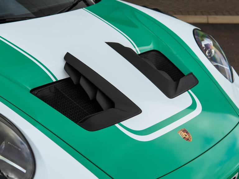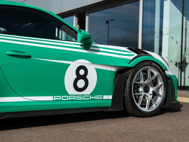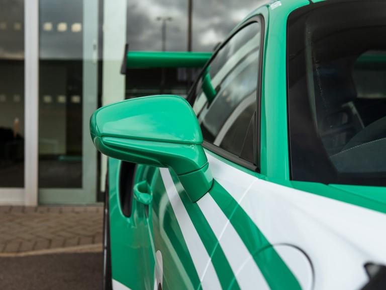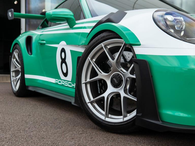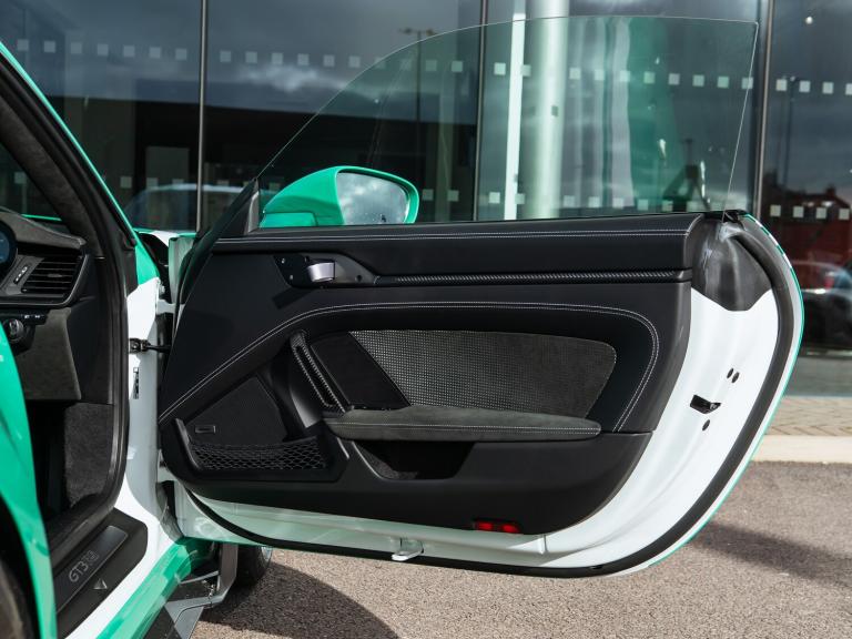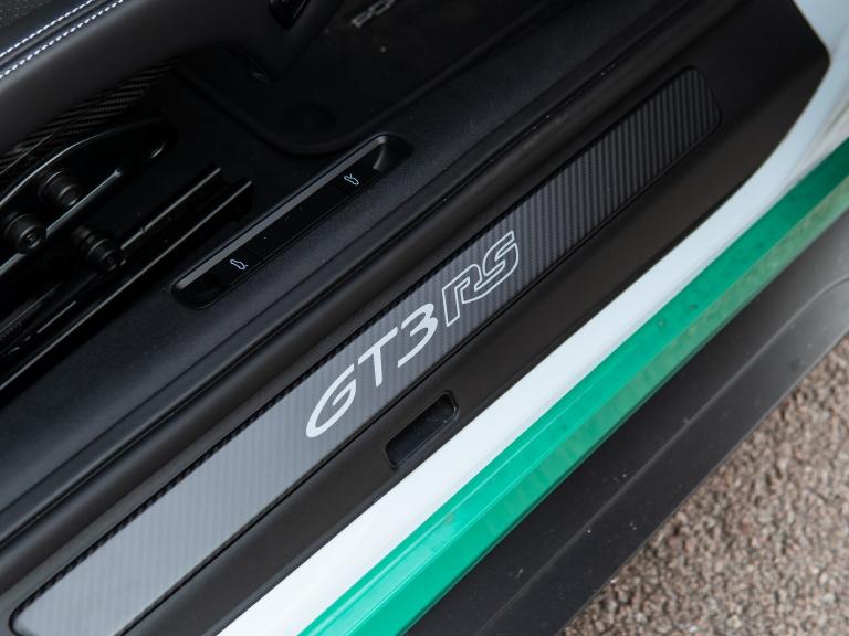 Just arrived, we are delighted to present this stunning GT3 RS completed with factory fitted Exclusive Manufaktur Salzburg wrap. A highly specified car with a host of desirable options including the Weissach Package, carbon fibre roll cage, Porsche Ceramic Composite Brakes and front axle lift.Every car undergoes a rigorous 111-point inspection, carried out by our factory-trained Porsche Approved technicians and covers every aspect of the car from engine and transmission, to electrical systems and bodywork. Any item that does not meet Porsche Approved standards is rectified using genuine Porsche parts before the vehicle is approved for sale. Between our three Gold technicians, Eddie, Gav and Tyler, we have over 70 years of Porsche experience and training between them. We invest heavily in ongoing training, regularly sending our technicians to the Porsche GB Training Academy. When you enquire on any of our vehicles, our experienced sales team will provide a detailed and personalised walk around video, tailored to highlight any aspect of the car that matters most to you. We can also supply additional high-resolution photographs on request, or arrange a live video call.To make purchasing from us as seamless as possible, we offer complimentary nationwide delivery on all pre-owned vehicles ensuring your Porsche arrives safely and conveniently to your home.Key features included with this vehicle are: Weissach package, Club Sport Package, bespoke complete wrapping, lifting system front axle, Porsche Ceramic Composite Brake (PCCB), and roll cage in Carbon Fibre (CFRP).Options fitted: 20in Front 21in Rear Alloy Wheels - GT3 RS Forged Magnesium - Lightweight, BORN IN FLACHT Logo LED Door Courtesy Lights, BOSE Surround Sound System, Bespoke Complete Wrapping, Club Sports Package, Exclusive Design TailLights, Lifting System - Front Axle, PCCB - Porsche Ceramic Composite Brakes with Brake Calipers Painted in Black - High-Gloss, Privacy Glass, Reversing Camera, Storage Compartment Lid in Race-Tex with Porsche Logo, Weissach Package.