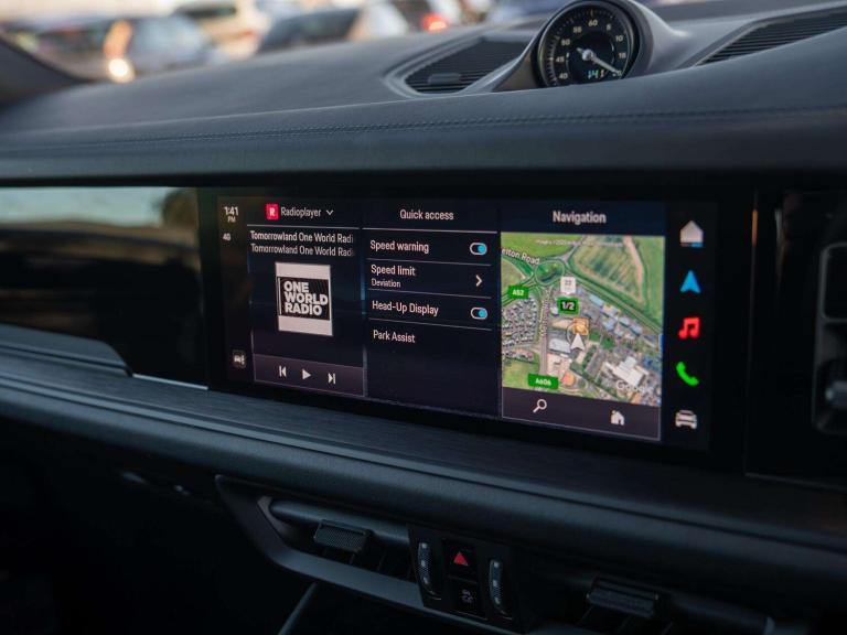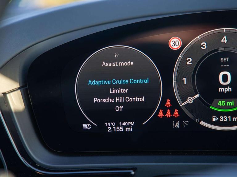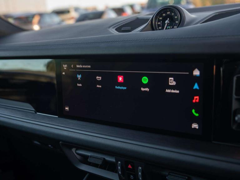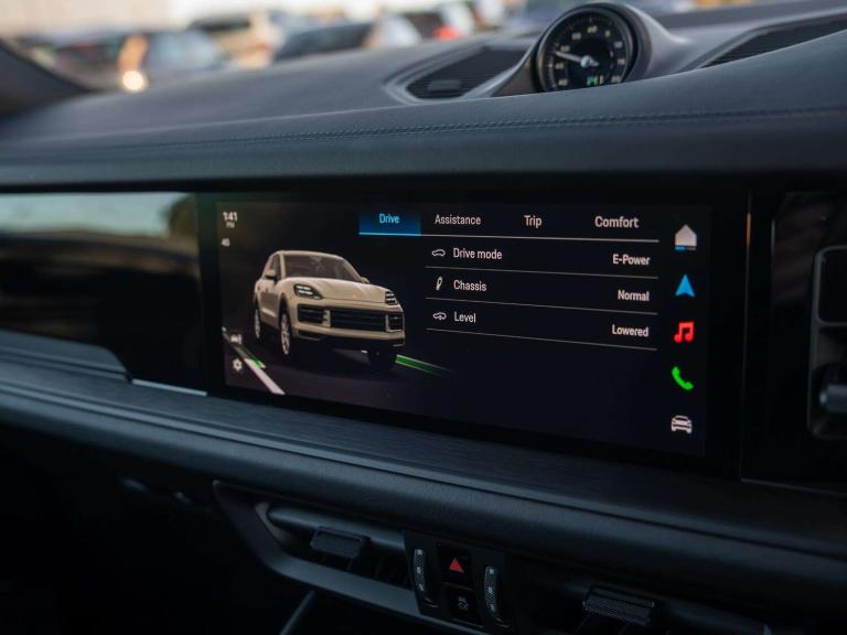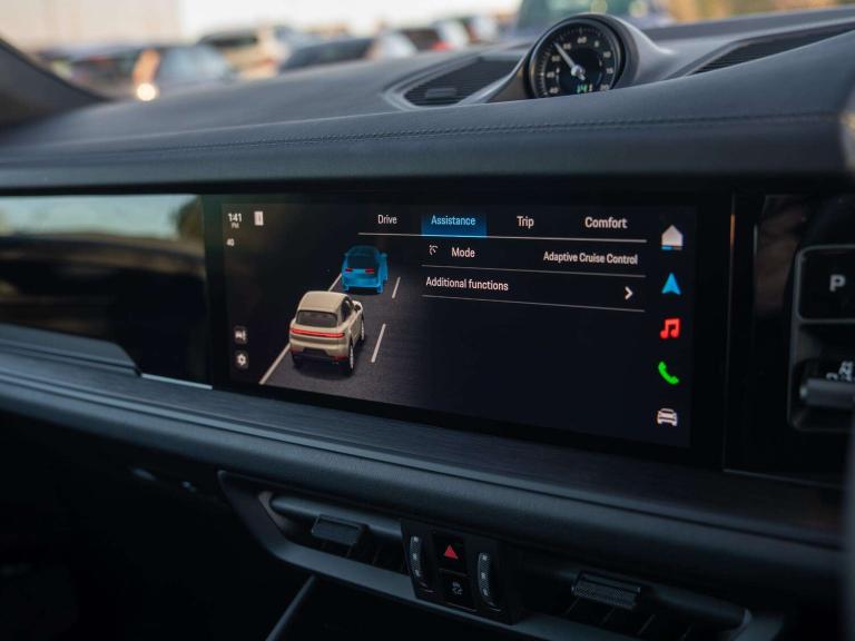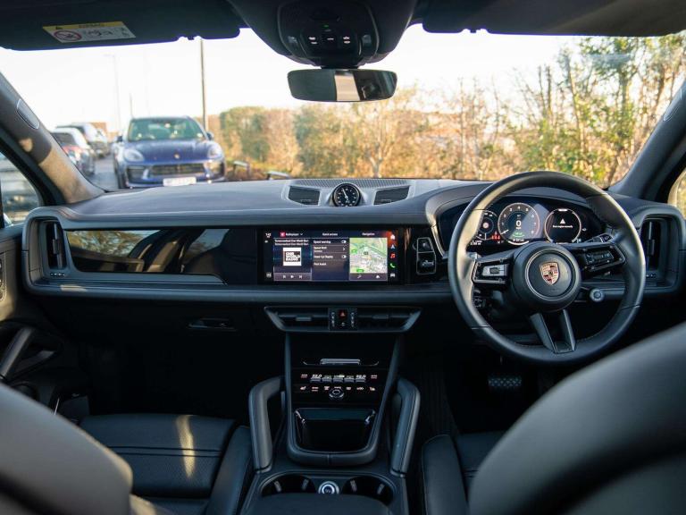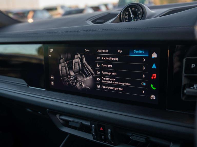 21 rear seats (3NS), 22-inch Exclusive Design Sport wheels in gloss Black (57Y), 70-litre fuel tank (0M1), Adaptive air suspension with levelling system and height adjustment including Porsche Active Suspension Management (PASM) (1BK), Adaptive cruise control (8T8), Adaptive Sports Seats in Front (18-Way, electric) (Q1J), Accent Package Black (GT0), Ambient lighting (QQ1), Apple® CarPlay (9WT), Automatically dimming interior and exterior mirrors (4L6), Brake system with brake calipers in Black (1LD), Burmester® 3D High-End Surround Sound System (9VJ), Comfort Access (4F2), Door handles painted in exterior colour (6JD), Door Sill Guards brushed Aluminium in Black, illuminated (VT9), Dual sun visors for driver and front passenger (5XC), Electric steering column adjustment (2C7), Electric Sound (GM4), Fuel filler cap in aluminium look (2W6), GT Sports steering wheel including steering wheel heating (2PJ), Head-Up Display (KS1), Heated windscreen (4GR), Lane Change Assist (7Y1), Lane Keeping Assist (6I3), Panoramic roof system (3FU), ParkAssist including Surround View (KA6), Pedals and footrest in Black (VF0), Preparation Porsche Dashcam (front and rear) (QK3), Privacy glass (VW1), Seat heating (rear) (4A4), Self-Steering Park Assist (7X5), Seat belts black (FZ0), Roof rails in Black aluminium (3S2), Side window trims and front inlays in Black (high-gloss) (QJ4), Smartphone compartment with wireless charging (up to 15W) (9ZE), Soft-close doors (GZ2), Sports tailpipes (dark) (0P6), SportDesign package (front) with additional painted elements (2D4), Sport Chrono Package (8LH), Surround View with Active Parking Support (FT3), VOICE CONTROL (QH1), Traffic sign recognition (QR9)