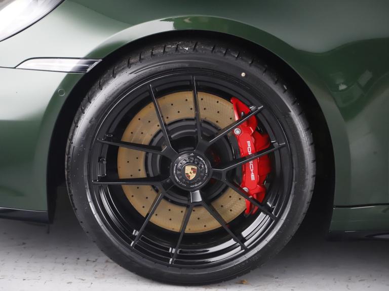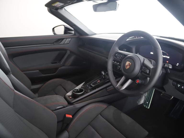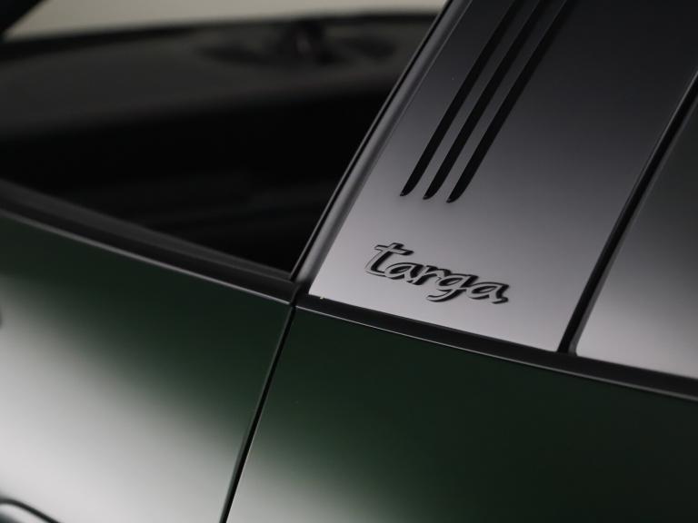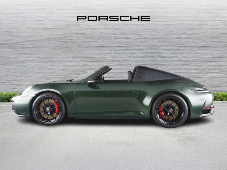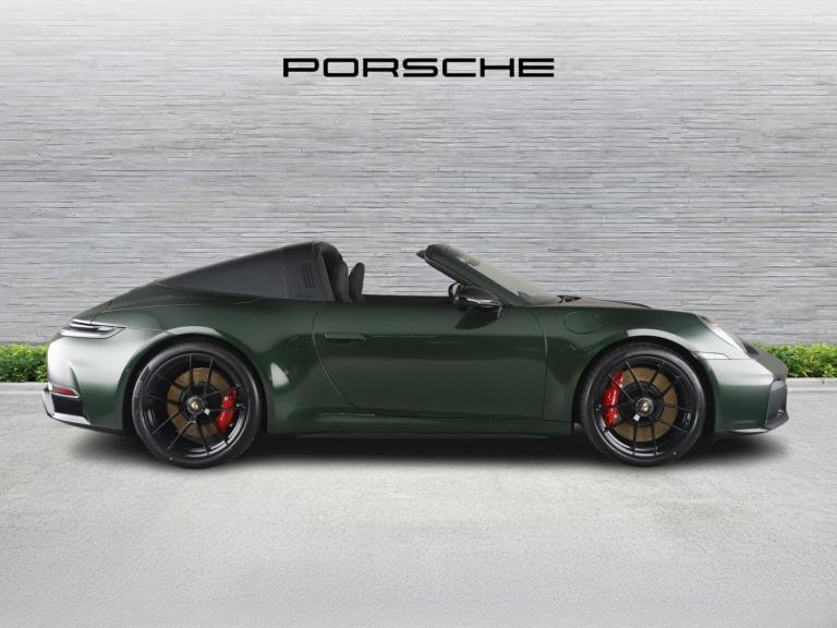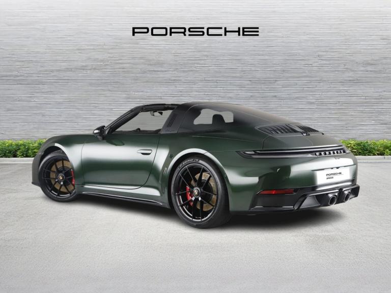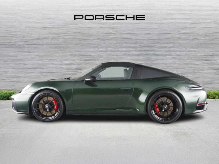 For sale: Porsche 911 3.6 T-Hybrid 992 4 GTS Targa 2dr Petrol Hybrid PDK 4WD Euro 6 (s/s) (541 ps), finished in striking Oak Green Metallic Neo. This convertible offers an exceptional configuration, combining the exhilarating performance of the 911 GTS with the practicality of a 2+2 seating arrangement and the distinctiveness of the Targa body style.This example is equipped with a thoughtful selection of factory options, enhancing both its visual appeal and daily usability. The Exterior Package is finished in Black (high-gloss), complementing details such as the Engine Compartment Lid painted in Titanium Grey with a Carbon badge, Exclusive Design TailLights, and Window Triangle Trims in Carbon. The Exclusive Design Fuel Filler Cap and Sports Tailpipes in Titanium further highlight the vehicle’s attention to detail.The cabin features Adaptive Sports Seats Plus with 18-way electrical adjustment and memory package, providing tailored comfort for all occupants. The interior is further enhanced by Door Sill Guards in Carbon Matt with illumination, a Heated GT Sports Steering Wheel in Leather with Steering Wheel Panel in Carbon Matt, and Race-Tex Sun Visors. Privacy Glass and a Windscreen with Grey Top-Tint add to the sense of refinement and exclusivity.Technological features include Tinted HD-Matrix LED Main Headlights, Surround View with Active Parking Support, Power Steering Plus, and the Lifting System for the front axle, ensuring added convenience and functionality in various driving scenarios. The bespoke logo LED door courtesy lights and deletion of the GTS logo on the doors create a discreet yet individualised aesthetic, while the Rev Counter in Carmine Red provides a sporty touch to the driver’s environment.Key features: Exterior Package painted in Black (high-gloss), Lifting system front axle, Sports Tailpipes in Titanium, Tinted HD-Matrix LED Main Headlights, Heated GT Sports Steering Wheel Leather with Steering Wheel Panel Carbon matt, Surround View with Active Parking Support.Options include: Adaptive Sports Seats Plus – Electrical 18-Way with Memory Package, Bespoke Logo LED Door Courtesy Lights, Deletion of GTS Logo on Doors, Door Sill Guards – Carbon Matt – Illuminated, Engine Compartment Lid Painted in Titanium Grey with Badge in Carbon, Exclusive Design Fuel Filler Cap, Exclusive Design TailLights, Exterior Package Painted in Black – High-Gloss, Heated GT Sports Steering Wheel Leather with Steering Wheel Panel Carbon Matt, Lifting