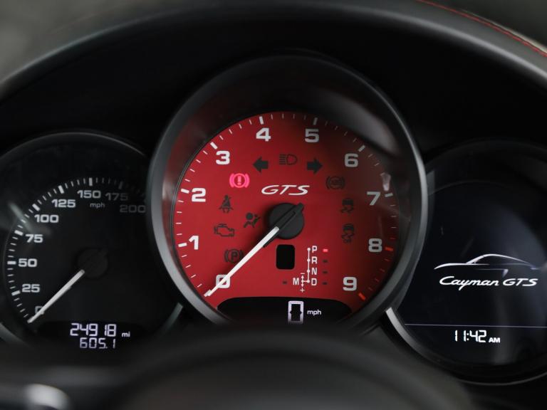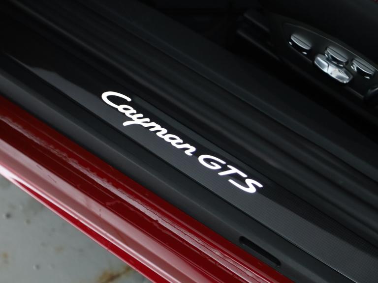 For sale is a distinguished Porsche 718 Cayman 4.0 GTS Coupe 2dr Petrol Manual Euro 6 (s/s) (400 ps) in striking red. This exceptional coupe offers an engaging driving experience with its manual transmission and purposeful GTS specification, tailored for those who appreciate refined engineering and dynamic performance.The exterior is finished in an eye-catching red, complemented by design elements such as the PORSCHE logo in satin black, a rear wing painted in high-gloss black, and the SportDesign Package also finished in high-gloss black. The Exclusive Design Fuel Filler Cap adds a subtle yet distinct touch of exclusivity to the vehicle's appearance.Inside, the car features a purposeful two-seat cabin, ensuring a focused and driver-centric environment. The Adaptive Sports Seats Plus, electrically adjustable in 18 ways, provide outstanding comfort and support, allowing for a truly personalised seating position. The GTS interior package further elevates the ambience, reflecting the car’s sporty character.Equipped with a host of advanced options, this 718 Cayman GTS includes Adaptive Cruise Control for enhanced long-distance comfort and safety, and Porsche Entry for convenient access. The PASM (Porsche Active Suspension Management) system, with ride height lowered by 10mm, delivers superior handling and ride quality by actively and continuously adjusting the damping force on each wheel.For those who appreciate premium audio, the BOSE Surround Sound System delivers an immersive listening experience, while Power Steering Plus ensures responsive and precise steering at any speed. The vehicle is also equipped with PDLS Plus, providing advanced lighting performance and improved visibility.This Porsche 718 Cayman 4.0 GTS Coupe is offered in used condition and is presented with two doors and two seats, epitomising the essence of a classic sports coupe. The combination of its comprehensive specification, driver-focused features, and distinctive styling elements make it an excellent proposition for enthusiasts seeking a finely engineered sports car.Options: Adaptive Cruise Control, Adaptive Sports Seats Plus - Electrical 18 Ways, BOSE Surround Sound System, Exclusive Design Fuel Filler Cap, PASM - Porsche Active Suspension Management with Ride Height Lowered by 10mm, PORSCHE Logo in Satin Black, Porsche Entry, Power Steering Plus, Rear Wing Painted in Black - High-Gloss, SportDesign Package Painted in Black - High-Gloss.Key features: PDK, PASM, BOSE, PDLS Plus,