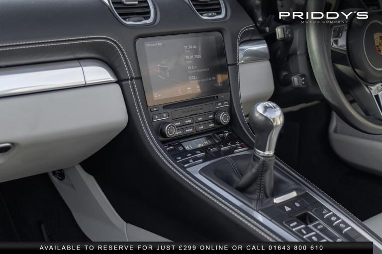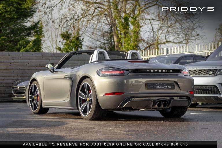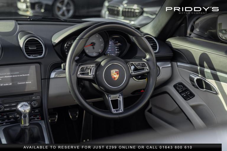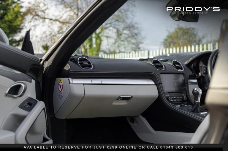 Priddys Motor Company are delighted to present this 718 Boxster S 2.5T, a manual example showing just 24,578 miles. Carefully stored in an underground car park and used only on the right days, this car has been cherished from day one. The sale is entirely genuine the owner, having loved every moment behind the wheel, is now considering a 718 GTS or an Audi R8 V10 Plus, making this a considered and heartfelt decision rather than a casual sale. The moment you sit inside, it's clear this is a special car. The slightly off-white leather, complete with Porsche crests in the headrests, pairs beautifully with the leather-wrapped dash and door cards, creating a cabin that feels thoughtful, refined, and distinctly Porsche. Every control, from the heated steering wheel and seats to the multifunction wheel and cruise control, is designed to make driving effortless yet engaging. The six-speed manual gearbox, valved exhaust, adaptive suspension, and Porsche Dynamic Light System combine to deliver a car that feels alive and connected, yet supple and comfortable when required. BOSE audio and dual-zone climate control add the finishing touches to a car that is as pleasurable on a sunny backroad as it is smooth and composed on longer journeys. This is a genuine example of a Boxster S, maintained meticulously by specialist Porsche attention and just inspected by ourselves, and it drives exactly as it should precise, lively, and utterly rewarding. Why Buy from Priddy's Motor Company Excellence isn't optional it's standard.