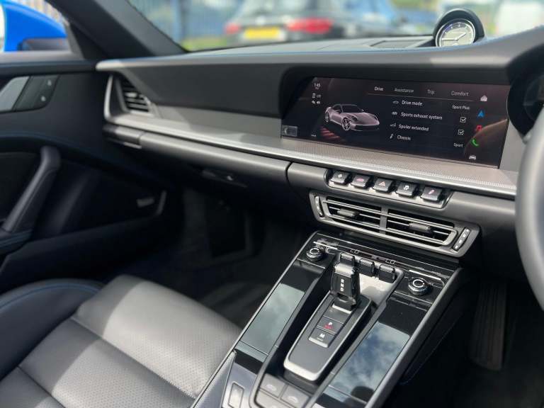 Stunning 911 992 Carrera 4S Cabriolet PDK Finished In Shark Blue With Black Leather. Fantastic Spec Inc: SportDesign Pack, SportDesign Side Skirts, Sports Exhaust System, BOSE Surround Sound, Sport Chrono Pack, Exclusive Design Taillights, Model Designation Painted In Black High Gloss, Power Steering Plus, Porsche Crest On Headrests, 20/21" RS Spyder Design Alloys, Interior Trim Pack With Decorative Stitching, Electric Folding Mirrors, Stitching Colour Selection, Electric Adaptive Sports Seats Plus, Shark Blue Seat Belts, Porsche Logo LED Door Courtesy Lights, Light Design Pack. This 911 Comes With Remainder Of Manufacturers Warranty. VAT QUALIFYING.