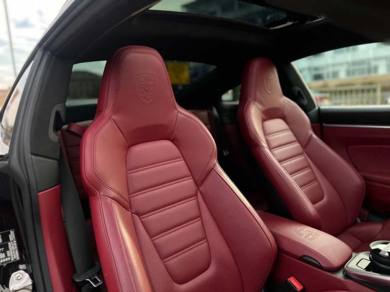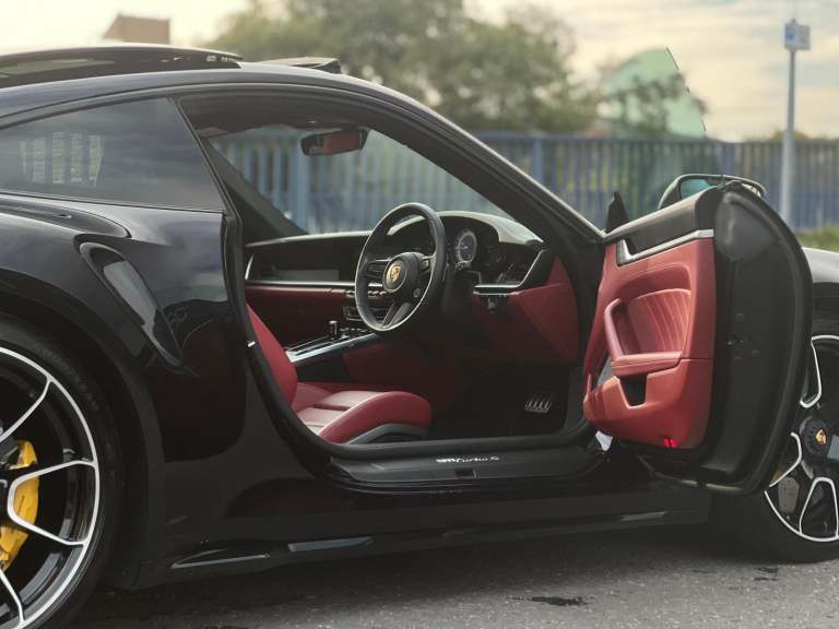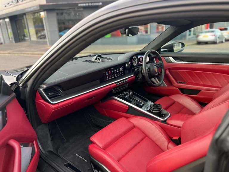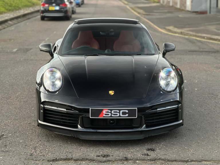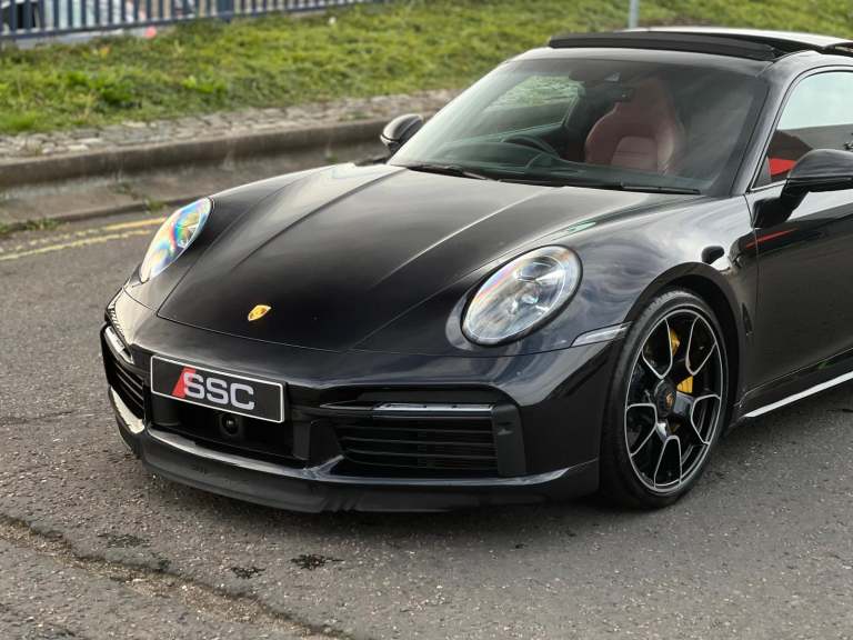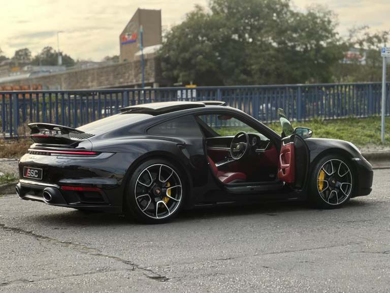 Stunning 911 992 Turbo S Finished In Jet Black Metallic With Two Tone Black and Bordeaux Leather Interior. Fantastic Spec Inc: Electric Slide/Tilt Glass Sunroof, Front Axle Lift System, Front Protective Film, Sports Exhaust System (Silver), ‘Porsche’ Logo LED Door Courtesy Lights, ‘Porsche’ Logo Painted in Black (High-Gloss), 20/21-Inch 911 Turbo S Exclusive Design Wheels, Aluminium Pedals, Burmester High-End Surround Sound System, Dashboard Trim Package in Leather, Exclusive Design Taillights, Exterior Mirror Upper Trims in Carbon, Bases in Black (High-Gloss), Fuel Filler Cap in Aluminium Look, Heated Multifunction GT Sports Steering Wheel in Leather With Matt Carbon Panel, Illuminated Door Sill Guards in Matt Carbon, LED Main Headlights in Black With Matrix Beam Including Porsche Dynamic Light System Plus, Light Design Package, Model Designation Painted in Black (High-Gloss), ParkAssist Including Surround View, Porsche Crest on Headrests, Porsche Crest on Storage Compartment Lid, Porsche InnoDrive Including Adaptive Cruise Control, Power Steering Plus, Privacy Glass, Rear Side Air Intakes Painted in Exterior Colour, Rev Counter in White, Side Skirts Painted in Exterior Colour, Side Window Trims in Black (High-Gloss), Smoking Package, Sport Chrono Stopwatch Instrument Dial in White, Storage Package, Tyre Sealing Compound and Electric Air Compressor, Wheels Painted in Black (High-Gloss). This Turbo S Comes With Remainder Of Manufacturers Warranty. VAT QUALIFYING!,