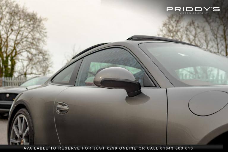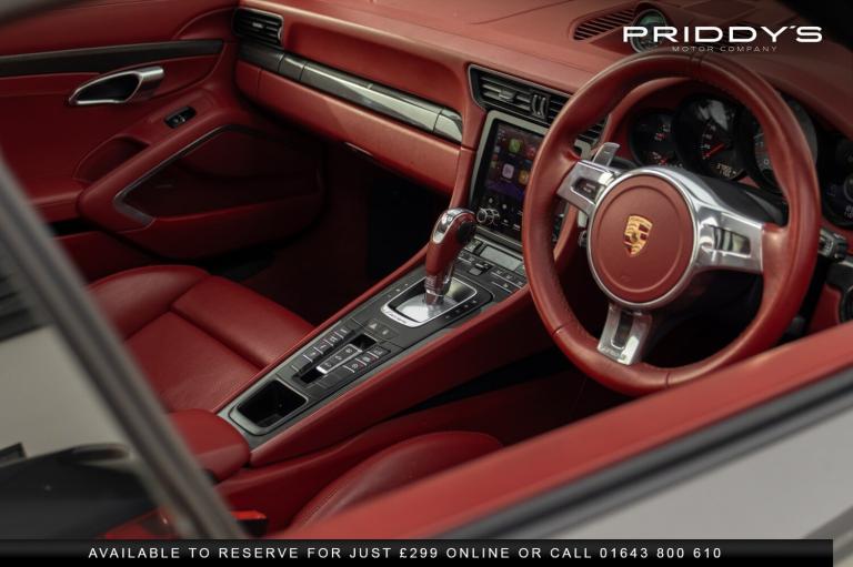 ** This vehicle has recently passed our meticulous pre-purchase inspection and has now arrived on site, where it has undergone a second detailed assessment and extended test drive. The photographs capture the car exactly as it arrived already presenting beautifully, as only the finest examples ever make it into our selection. It is now undergoing final preparation behind the scenes and will require only light finishing touches before being ready for handover. Given its superb condition and desirability, we recommend reserving early to secure it ahead of other discerning buyers ** Priddys Motor Company are proud to present a car that needs very little introduction the Porsche 911 Carrera S 3.8 PDK, registered 26042013 and showing just 37,988 miles. There is something about a 911 that no other marque quite replicates. It's the balance. The engineering integrity. The way it can be driven calmly, smoothly, almost discreetly and yet, with one press of Sport Plus, the opening of the exhaust valves and the suspension dialled tighter, it transforms into something electrifying. The duality is extraordinary. Civilised when required. Utterly alive when provoked. The 3.8-litre flat-six produces 400PS, delivered through Porsche's PDK transmission with that unmistakable immediacy. The downshifts are addictive sharp, perfectly timed, accompanied by crackles and burbles that are never theatrical for the sake of it. They're authentic. Earned. Accepted. Because this isn't noise for attention it's engineering expression. Finished in a sophisticated metallic grey, the exterior is purposeful yet elegant. Then you open the door and are greeted by one of the most striking interiors we have seen in a 991. A deep red leather cabin that coats the seats, dash and door cards in rich, premium material executed in a way only Porsche could achieve without it ever feeling overdone. It is arguably one of the prettiest and most unique interiors we've had the pleasure of presenting. The panoramic tilt and slide sunroof glides back and settles neatly above the rear screen, preserving that iconic 911 silhouette while filling the cabin with light. Subtle. Beautifully engineered. Completely cohesive. This example is exceptionally well specified, with over £18,000 worth of factory options when new, including: Sport Chrono Package Porsche Doppelkupplung (PDK) Adaptive Sports Seats Plus (18-way) with memory Sports exhaust system SportDesign front apron Carbon interior package & centre console trim BOSE Surround Sound System 20-inch Carrera Classic wheels ParkAssist front and rear with reverse camera Heated seats Cruise control Automatically dimming mirrors with rain sensor Electric folding mirrors Power Steering Plus Tyre pressure monitoring system Panoramic roof Extended leather dashboard and door cards Black Alcantara headliner The specification strikes the perfect balance between driver-focused performance and everyday usability. Apple CarPlay integrates seamlessly. The BOSE system sounds superb. The cabin ambience, especially at night with the subtle lighting and rich red leather, feels genuinely special. Service History 30042015 3,574 miles Porsche Main Dealer Oil 14062017 10,793 miles Porsche Main Dealer Major 08072019 13,171 miles Porsche Main Dealer Oil 16082021 13,491 miles Porsche Main Dealer Oil 10072023 15,614 miles Dorset Sports Cars Specialist Oil 12072024 25,829 miles Dorset Sports Cars Specialist Oil 16022026 Current Priddys Specialist Oil, Brake Fluid, Inspection The provenance is strong and reassuring, with consistent maintenance and a fresh inspection completed ready for its next custodian. Tyres are Michelin Pilot Sport Cup 2 on all four corners, all replaced in 2024. Brakes are in excellent health, with discs presenting superbly and pads measuring approximately 9mm at the front and 8mm at the rear plenty of life remaining. CO is 205 gkm. A 991 Carrera S done properly is a masterpiece of modern sports car engineering. Engaging without being intimidating. Refined without being dull. Fast without needing to prove anything. This is not just another 991. You know the feeling when a 911 passes you the other way and you instinctively glance in the mirror for one more look? This is that car. The proportions. The stance. The sound as it shifts down through the gears. It is a beautifully specified, wonderfully maintained, deeply characterful example of one of Porsche's finest generations and it feels every bit as special from behind the wheel as it does standing still. Why Buy from Priddy's Motor Company Excellence isn't optional it's standard.