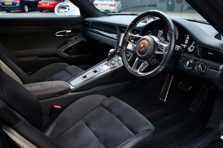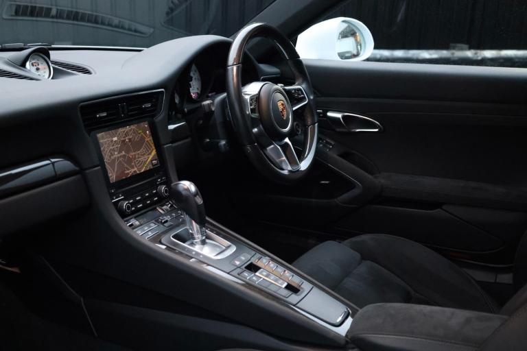 Presented in Metallic White with 20 inch Turbo S wheels and cost option Sport Design Pack, this is a great looking 911. Paintwork has been GTechniq Platinum Ceramic coated and is in exceptional condition all round. There are no scuffs to bumpers, car park dents or other notable marks. The wheels are in superb order with no ingrained dirt or curbing damage to the edges. Individual body panel and wheel pictures available on our website. HD video walk around on request.