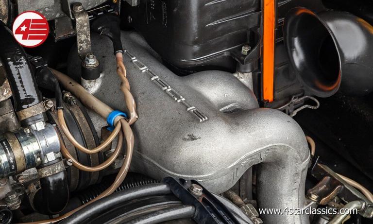 Inside, the Targa boasts desirable sports seats trimmed in Linen leather and edged with black piping. All the seat bolsters are in good condition with little more than some expected light surface marking on the driver's side to report. The steering wheel is original and feels great in hand with a perfect grain to the leather. All the switchgear still feels solid to operate and for modern convenience a Sony radio with USB connectivity is currently fitted. The carpets are in excellent order, including under the bonnet, and there are tailored overmats in the footwells.
