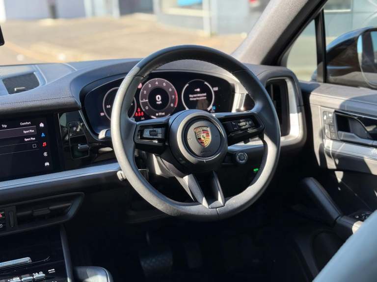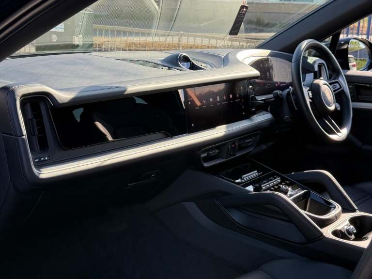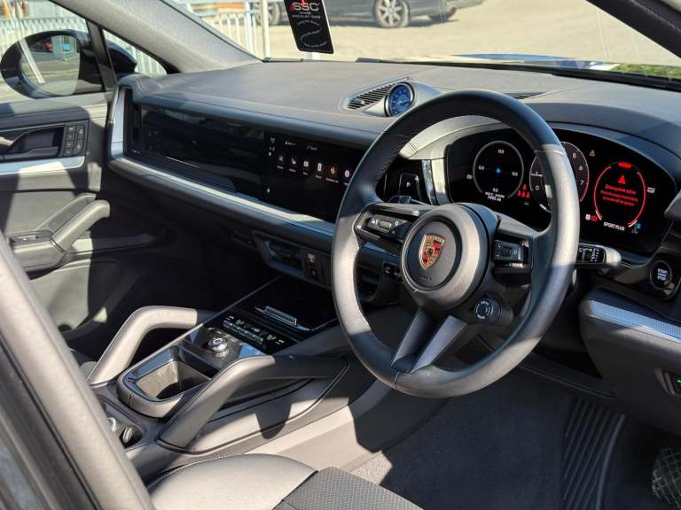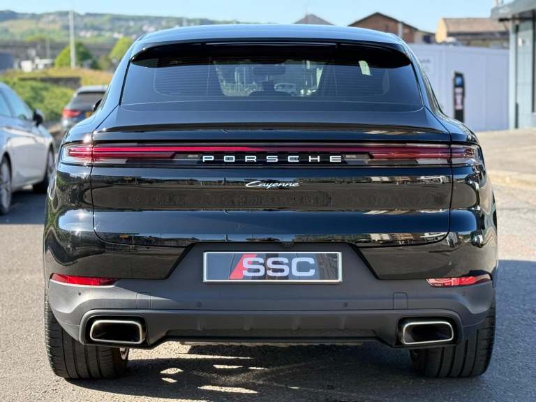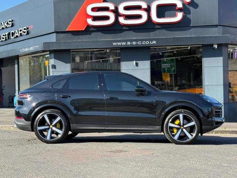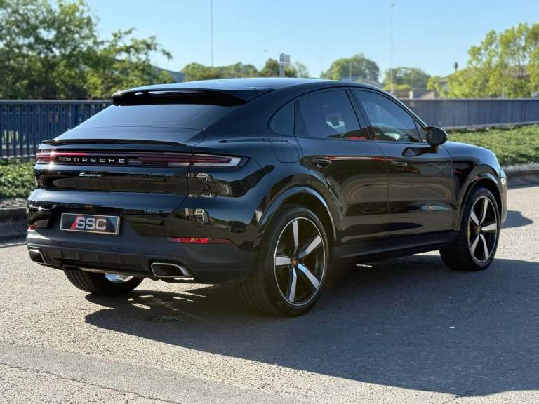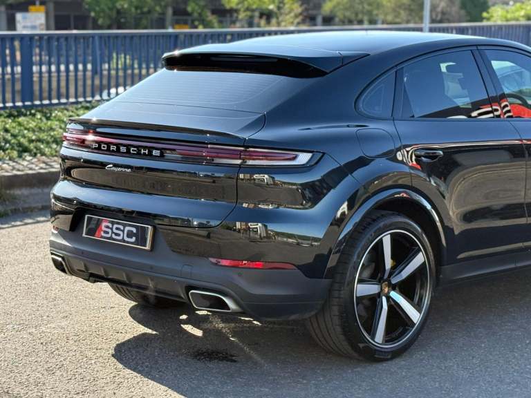 Stunning Facelift Cayenne Coupe Finished In Chromite Black Metallic With Black Leather Interior. 2+1 Rear Seats, Adaptove Front Sports Seats 18 Way With Memory, BOSE Surround Sound, 22" Exclusive Design Sport Wheels In Black High Gloss, Panoramic Glass Roof, Apple CarPlay, ParkAssist Including Surround View, Self-Steering Park Assist, Lane Keeping Assist, Matrix LED Headlights, Power Steering Plus, Sport Chrono Package, Automatically Dimming Exterior and Interior Mirrors, Driver Memory Package, Soft Close Doors. This Cayenne Comes With Remainder Of Manufacturers Warranty.
