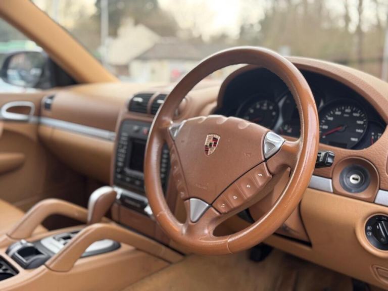 2005 PORSCHE CAYENNE 3.2 V6 – AUTOMATIC GEARBOX – ONLY 90,000 MILES WITH SERVICE HISTORY – BLACK WITH TAN LEATHER – SAT NAV – PARKING SENSORS – DIGITAL CLIMATE CONTROL – INFOTAINMENT SCREEN – UPGRADED ALLOYS – GOOD VALUE – PX TO CLEAR – LONG MOT