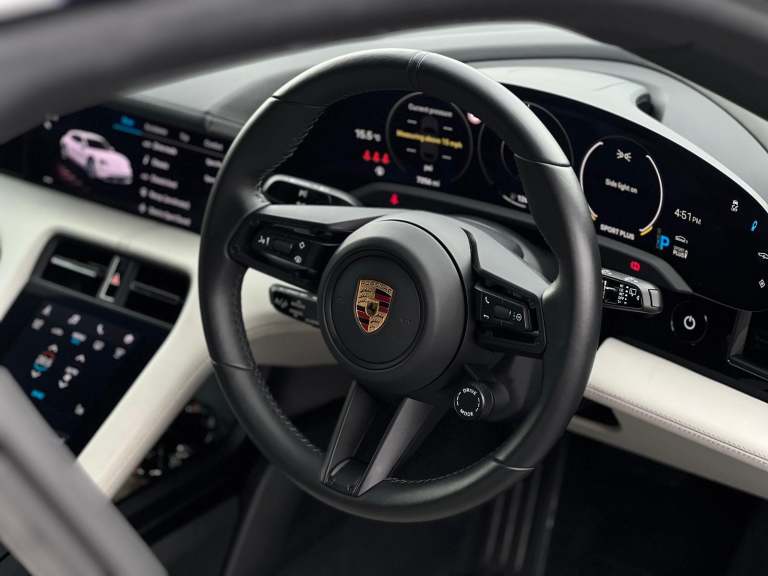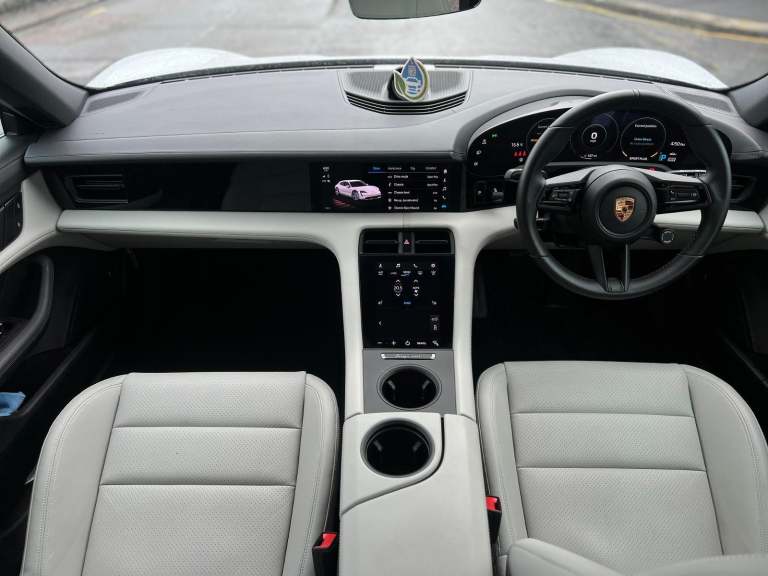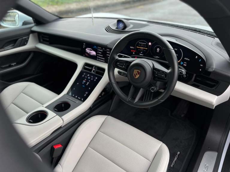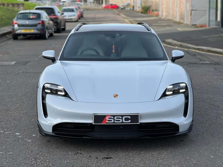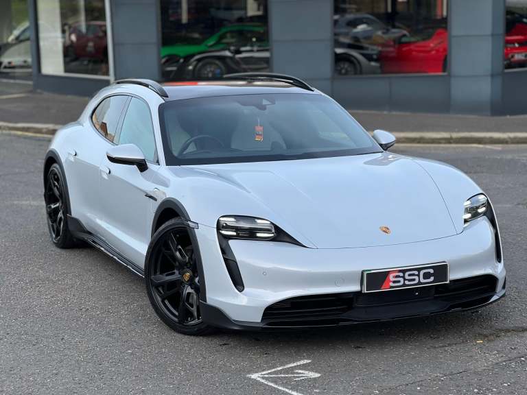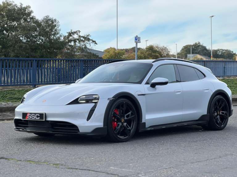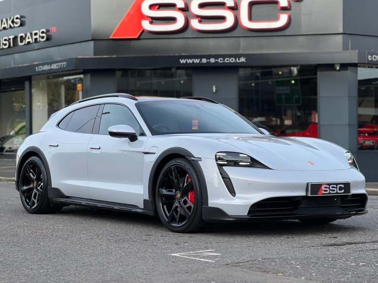 Stunning Taycan 4S Cross Turismo Finished In Ice Grey Metallic With Black/Crayon Two Tone Smooth Finish Leather. Fantastic Spec: Offroad Design Pack In Black, Panoramic Glass Roof, BOSE Surround Sound, 21" Cross Turismo Design Wheels, Wheels Painted In Satin Black, Side Window Trim In High Gloss Black, Electric Folding Mirrors, Deletion Of Model Designation, Roof Rails In Black Aluminium, Porsche Electric Sport Sound, Sport Chrono Pack, Rear Light Strip With Porsche Logo In Glacier White, Auto Dimming Mirrors, Windscreen With Grey Top Tint, Privacy Glass, ParkAssist With Reversing Camera, 4+1 Seats, Ambient Lighting, Rear Side Airbags, Heated GT Steering Wheel In Leather, Porsche Crest On Headrests, Electric Charging Cover, Mode 3 Public Charging Cable, 150kW DC On Board Booster, Tyre Sealing Compound and Electric Air Compressor. This Taycan Comes With Remainder Of Manufacturers Warranty. VAT QUALIFYING!
