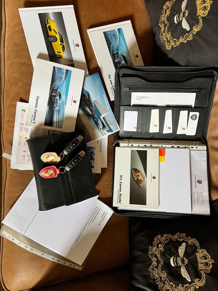 Happy to chat through as easier to discuss, even why 2.7 is sensible choice over 3.4 Or later 718 “4 cylinder”!! My previous car was an F type and this Cayman is way better. Amazing storage for those grand tours! Car currently has GTS variant rear valance (just looks better) but still have original. Same re steering wheel and gear selector. Mint condition original Luxor included but I prefered black currently fitted. Over carpet mats and rubber versions. Front and rear compartment protectors. 20” Carerra alloy wheels (colour crested). OEM Porsche approved 5mm wheel spacers (again just looks better without being boyracerish) Rain sensor wipers. Front & rear dash camera. 4 new TPMS fitted. Michelin Sport 4S years 18/19. Freshly MOT’d with NO Advisories as expected!