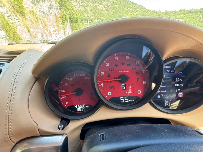 Last pic shows Kilometres as was on holiday. In fact vast majority of mileage in my ownership has been Motorway miles, not ‘stop-start’ commuting. Roads in Europe put ours to shame!! Traditional analogue revs and speedo. Multi Function display to right with sat nav duplication, messages etc. Smaller Front number plate plinth moved down (looks better?) and yellow film over front spots. Protective grills fitted to front intakes. All OE+ changes I’ve made can be removed if necessary. If you don’t want black wheel, I will reduce price by £450.