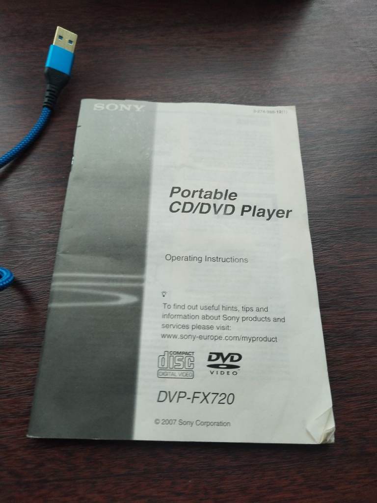 Sony portable cd /dvd player in good working order reguires new power supply available on ebay and Amazon for £5.99 can be seen working pick up from Mablethorpe or can be posted at cost