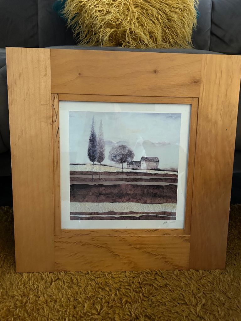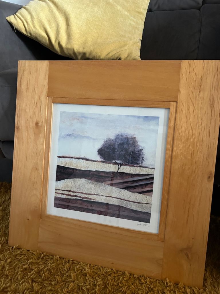 A pair of wall prints within a square wooden frame 20inch x 20inch