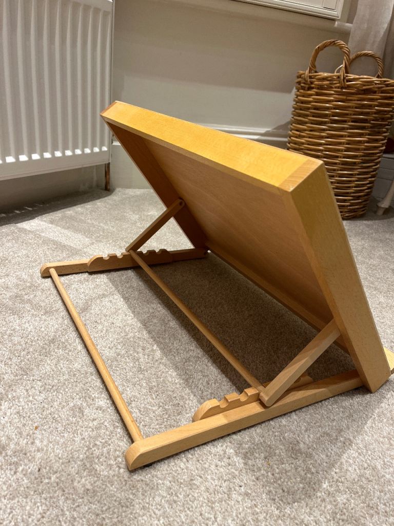 Wooden drawing/ painting stand fully adjustable and very sturdy. Great for art use or reading. In great condition. Used sparingly. No marks. Selling due to daughter going to uni.