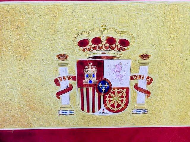 Large canvas on wood frame print of Spanish flan featuring Spain coat of arms