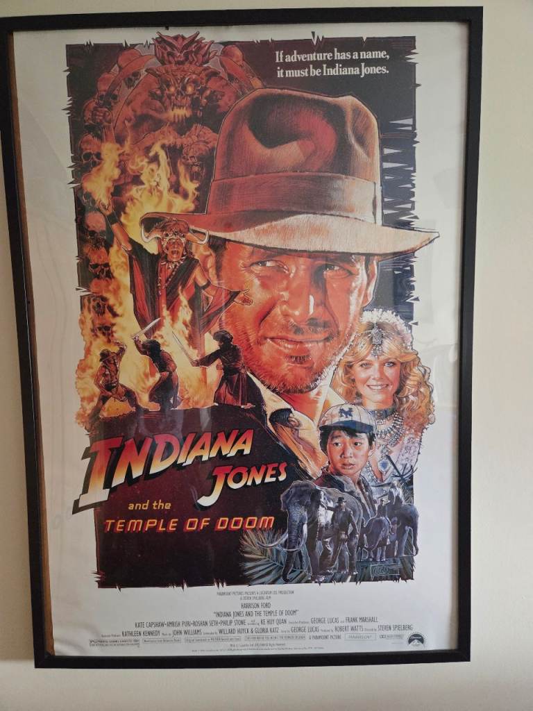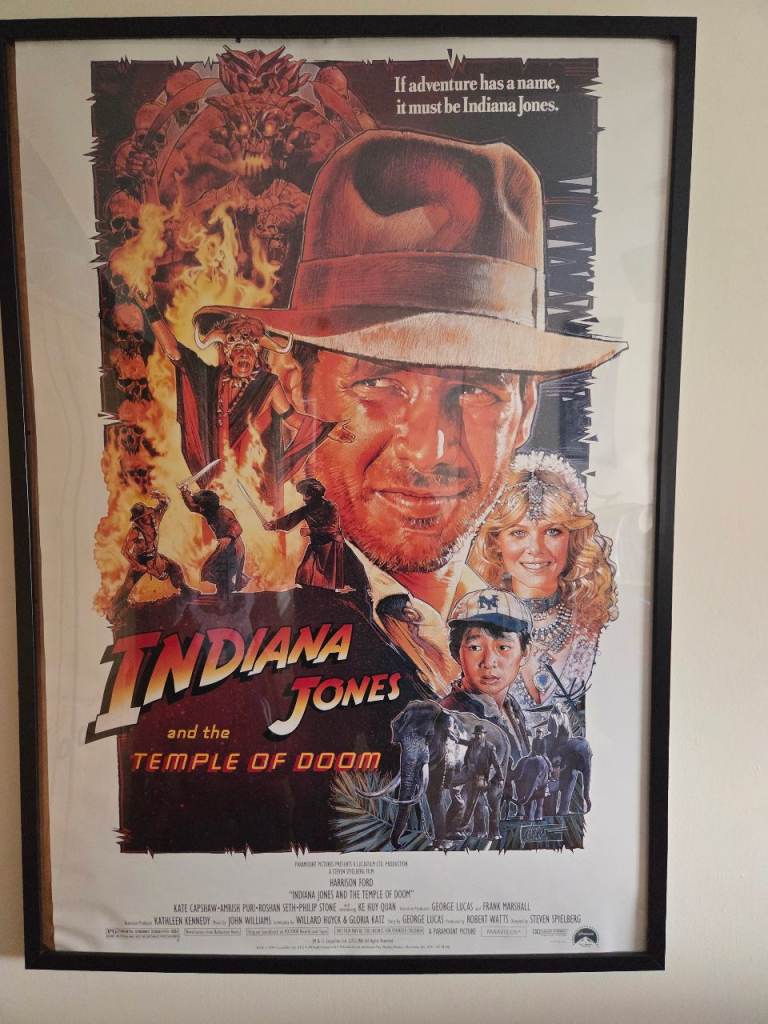 Framed Temple of Doom poster 103cm x72 and a half. One tiny side of poster doesn't fit frame. Poster and frame are not damaged