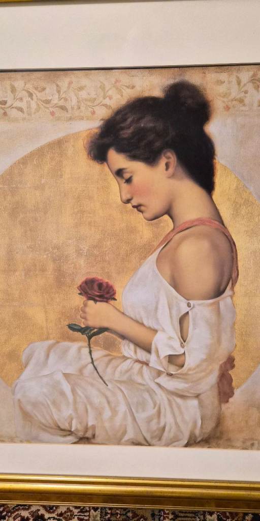 A beautiful victorian art piece titled Mystic Rose by an excellent artist named Richard Franklin. The painting captures the beauty of a woman.
