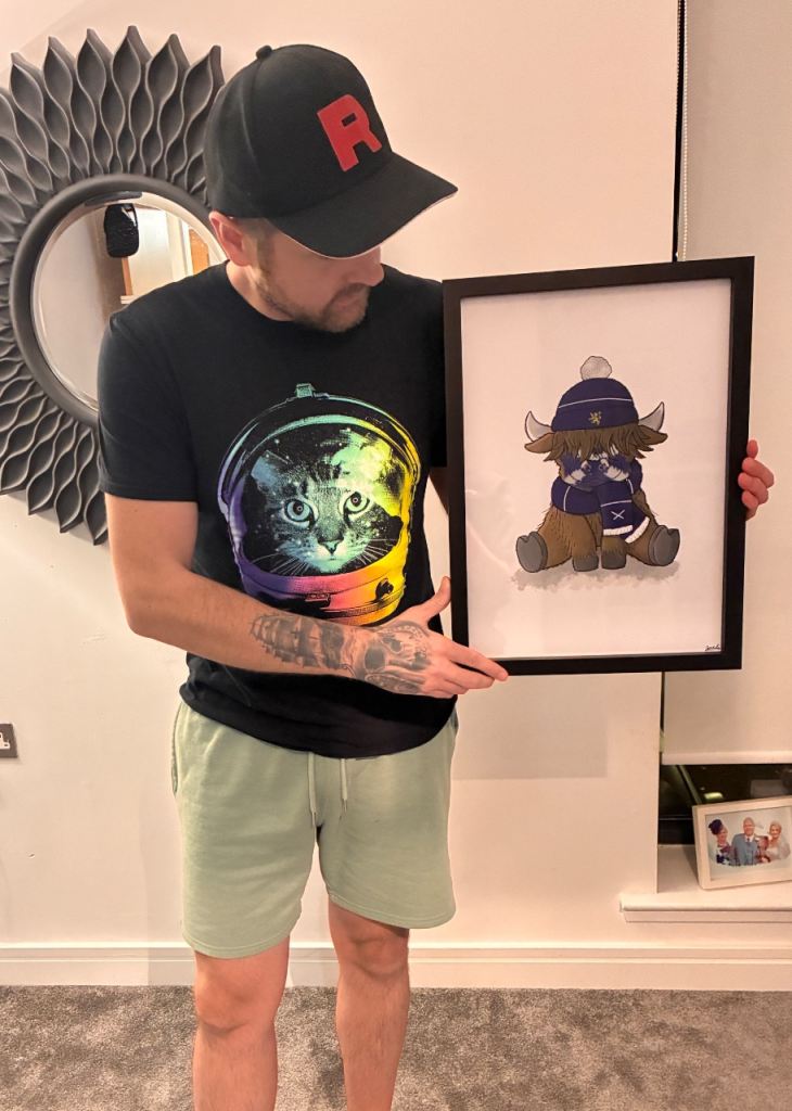 Recent artwork prints from Campbell Animation. The “Tartan Army Coo” in our Highland Cow range, printed on premium, silk card (350 gsm) in size A3 (297mm x 420mm)