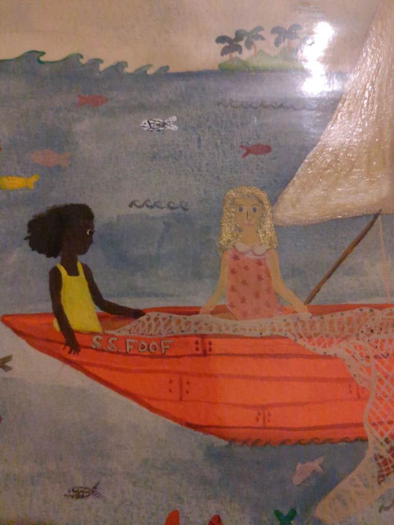 Posting for 8+ yearsWatercolour Painting of Fishing Boat with Figures – Good Condition