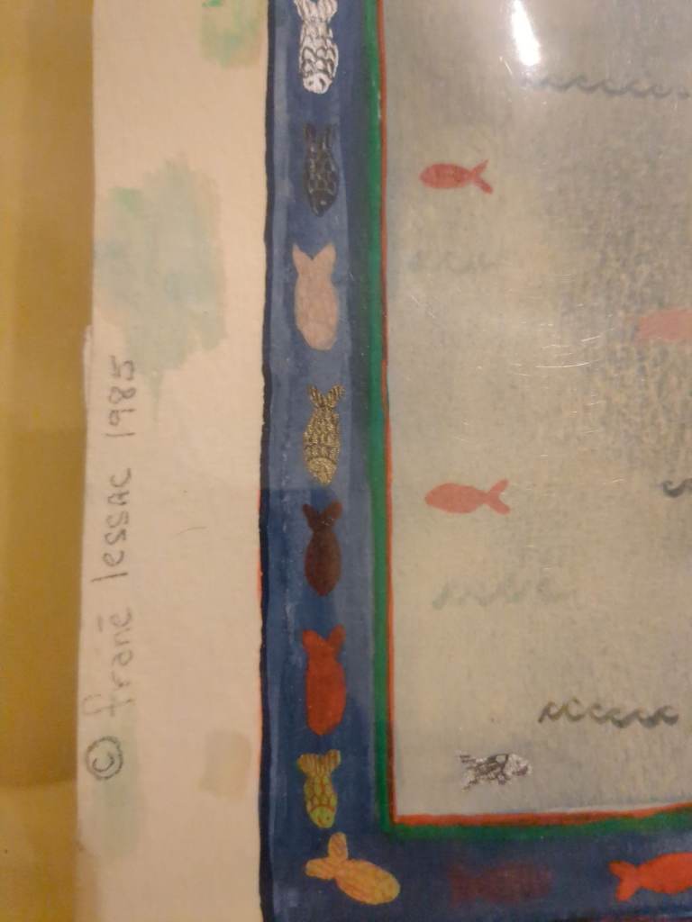 The scene shows rain, islands, and fish in the water, all within a decorative fish border.