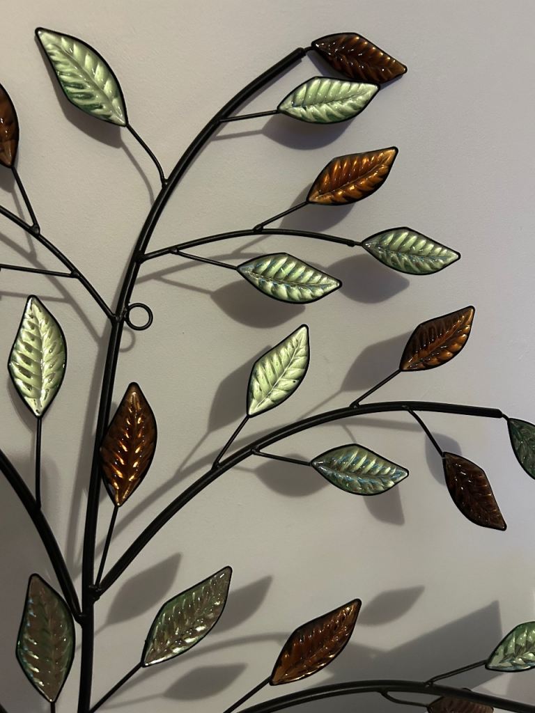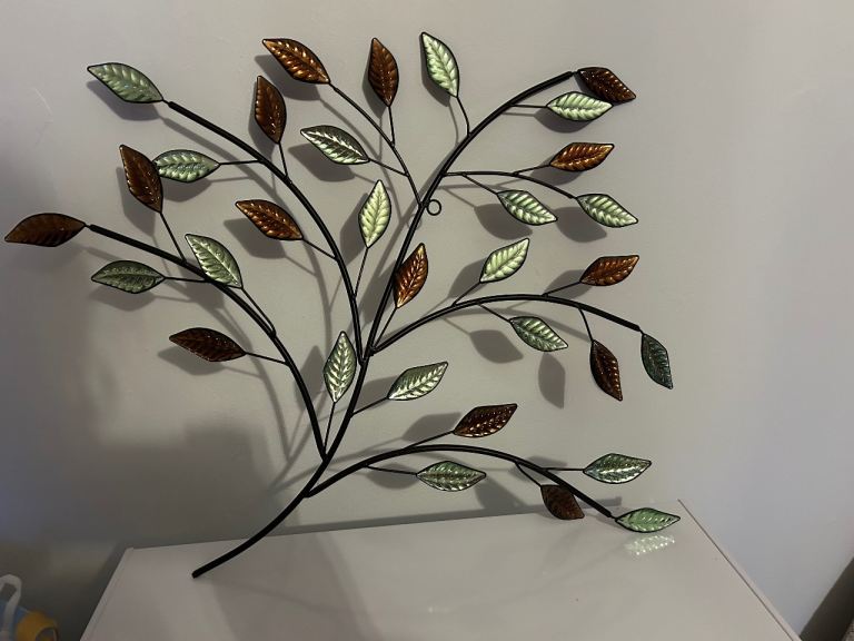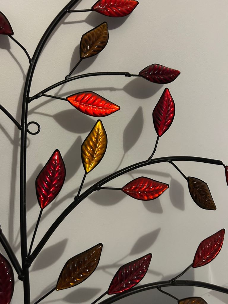 X2 Metal and Glass Leaf Wall Art. Both Black Metal with various coloured leafs. One is blue/brown. The other is red/orange/brown coloured. Both are in great condition from a smoke free home. Collection from Brightons, Falkirk