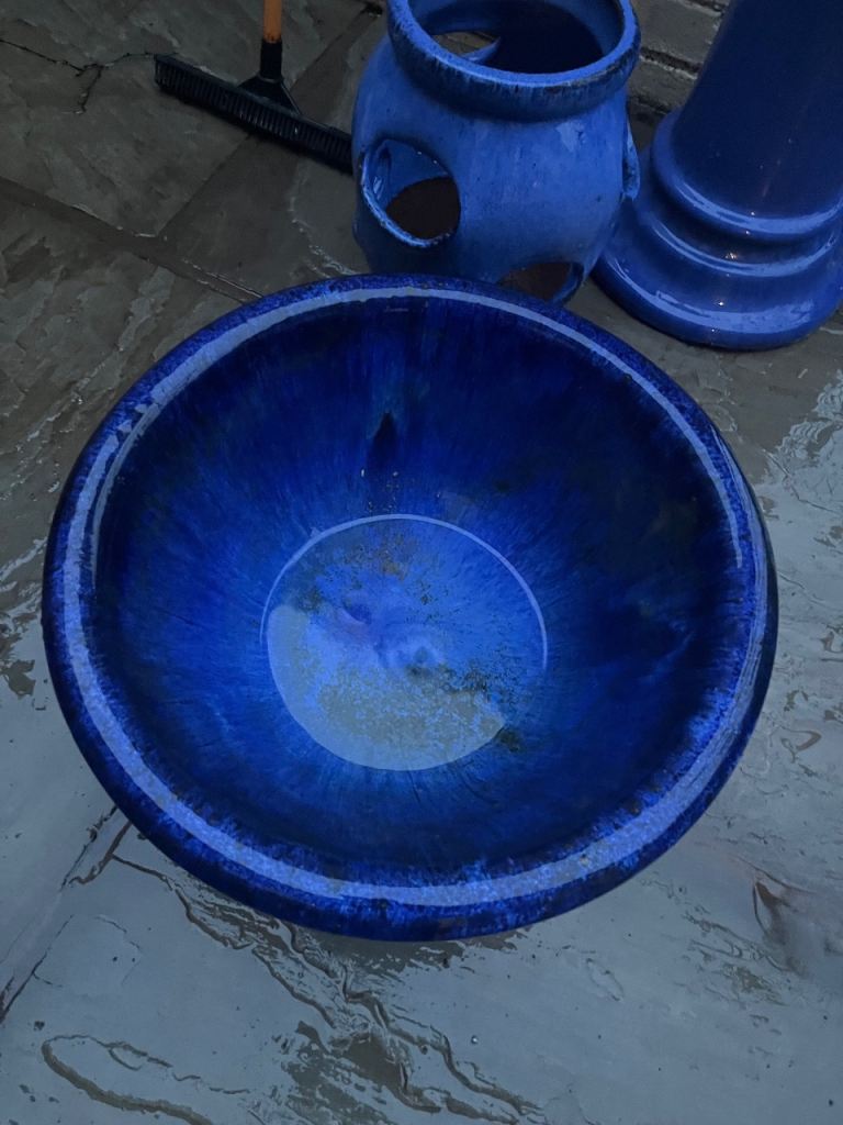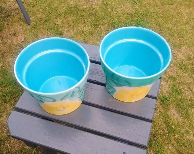 2 lovely blue ceramic strawberry/herb plant pots collection from Wickham Fareham.