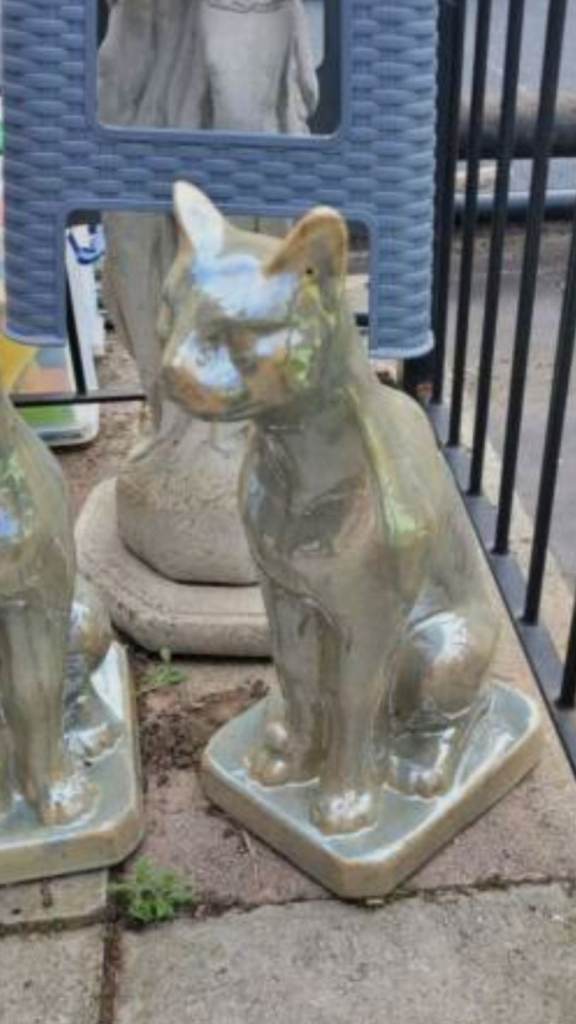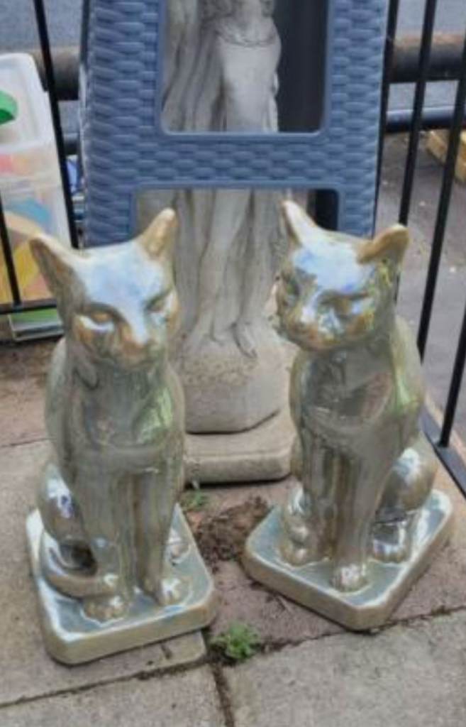 2 UNIQUE BEAUTIFUL CAT STATUE GARDEN ORNAMENT TERASA PATIO BALCONY ENTRANCE PORCH CERAMIC DECORATION