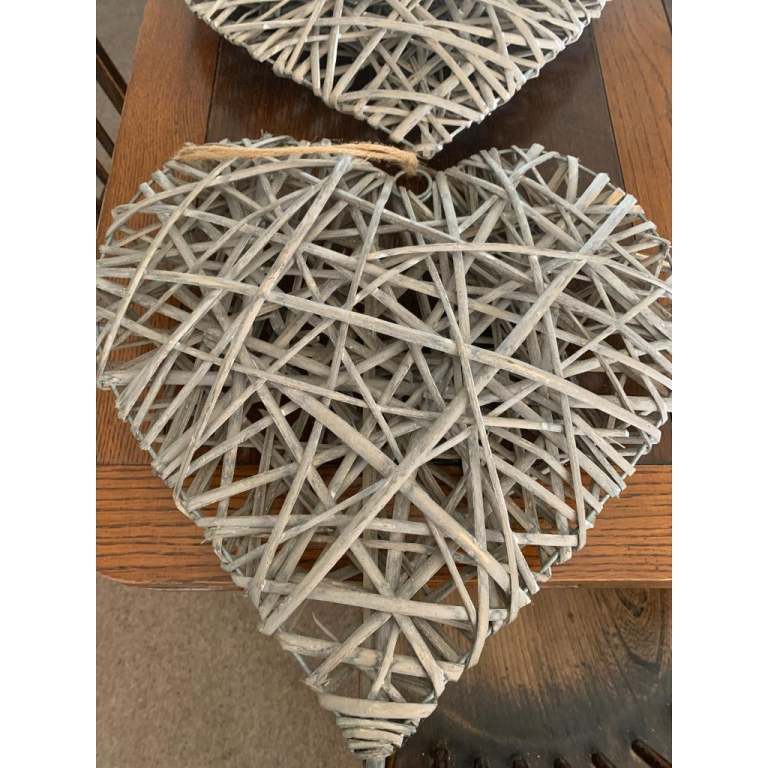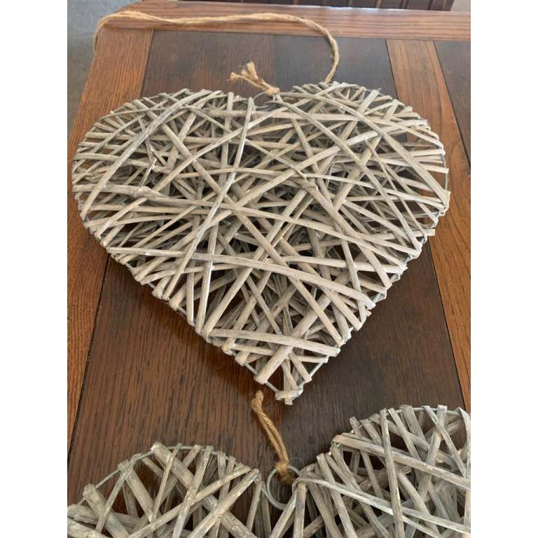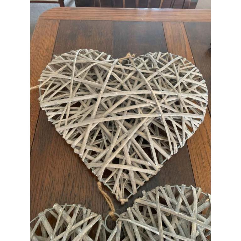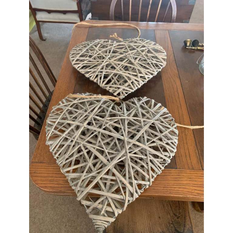 2wicker hanging large hearts 15 inches at widest point and 14 inches length