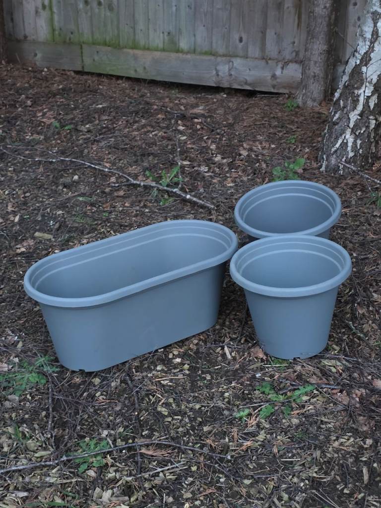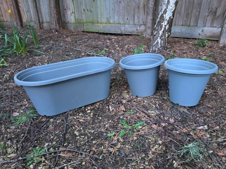 3PCS Light grey outdoor round and long plant pots with reservoir