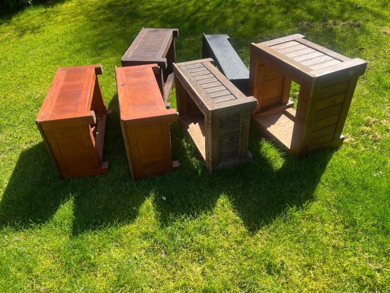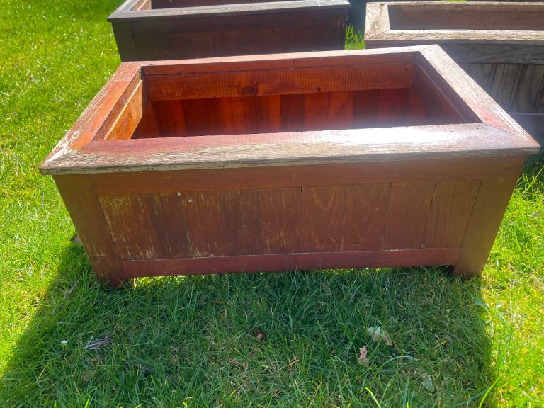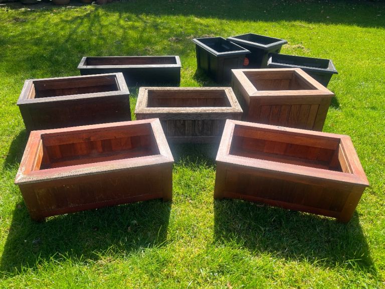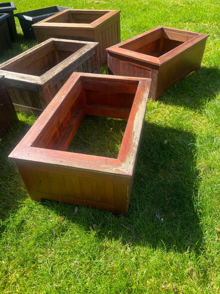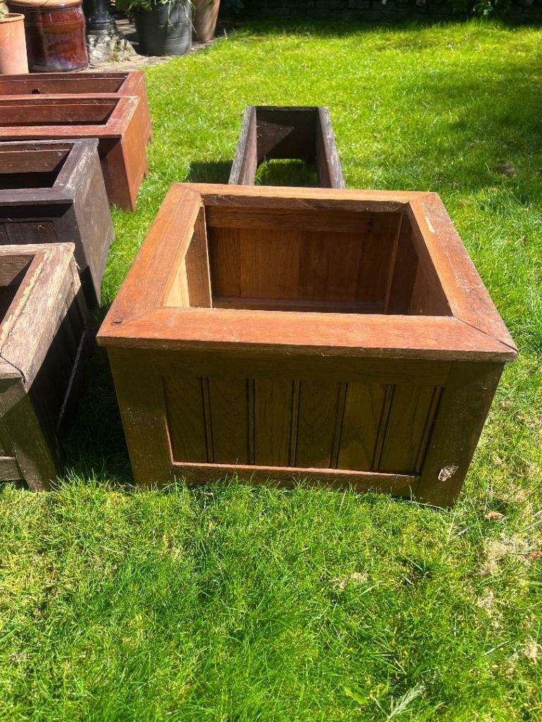 Variety of 6 different planters. At least two of them are oak, so are more heavy-duty, durable wood.