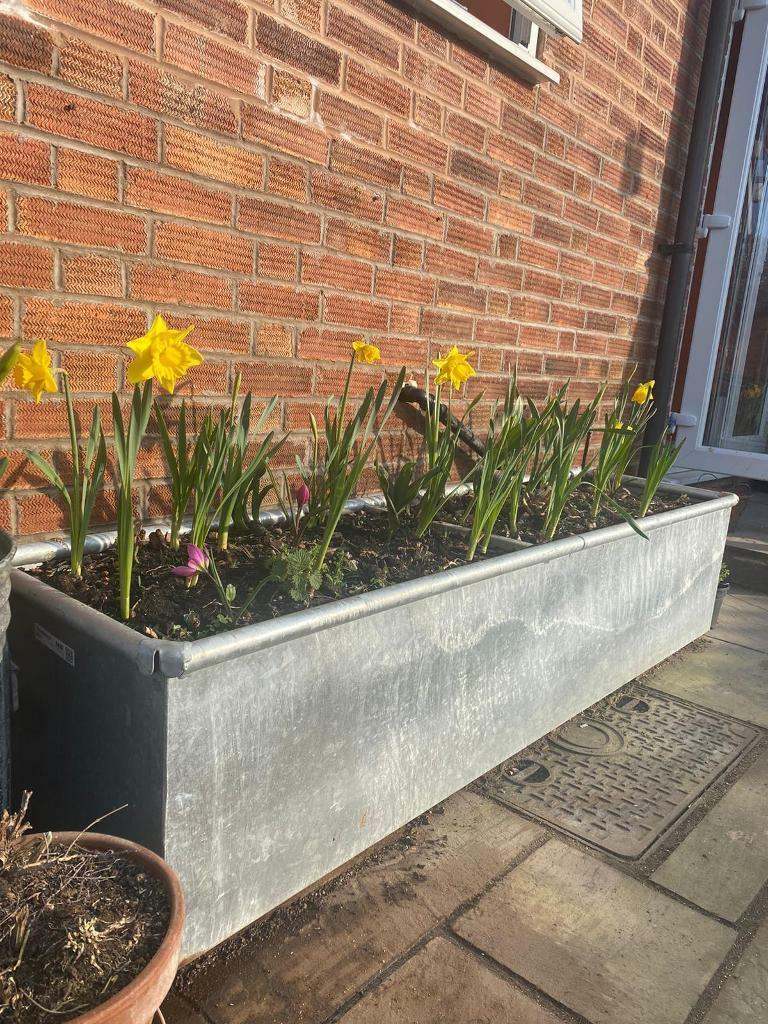 These galvanised water troughs make great planters they have a hole in one corner with a bolt in plug so drain well or can be plugged and filled with water