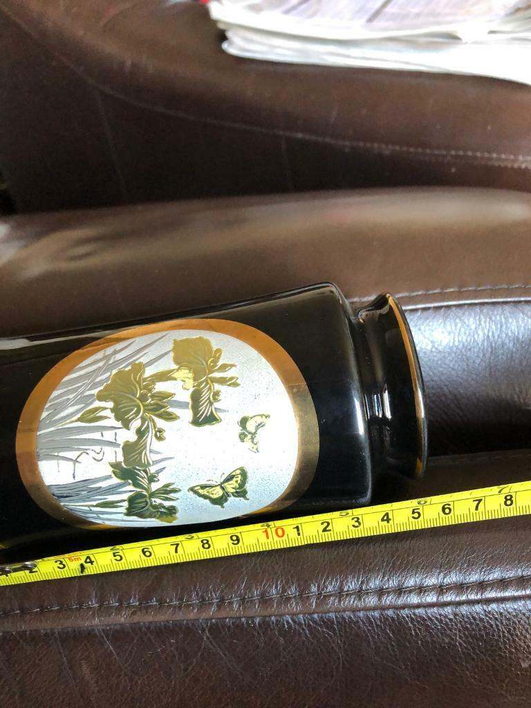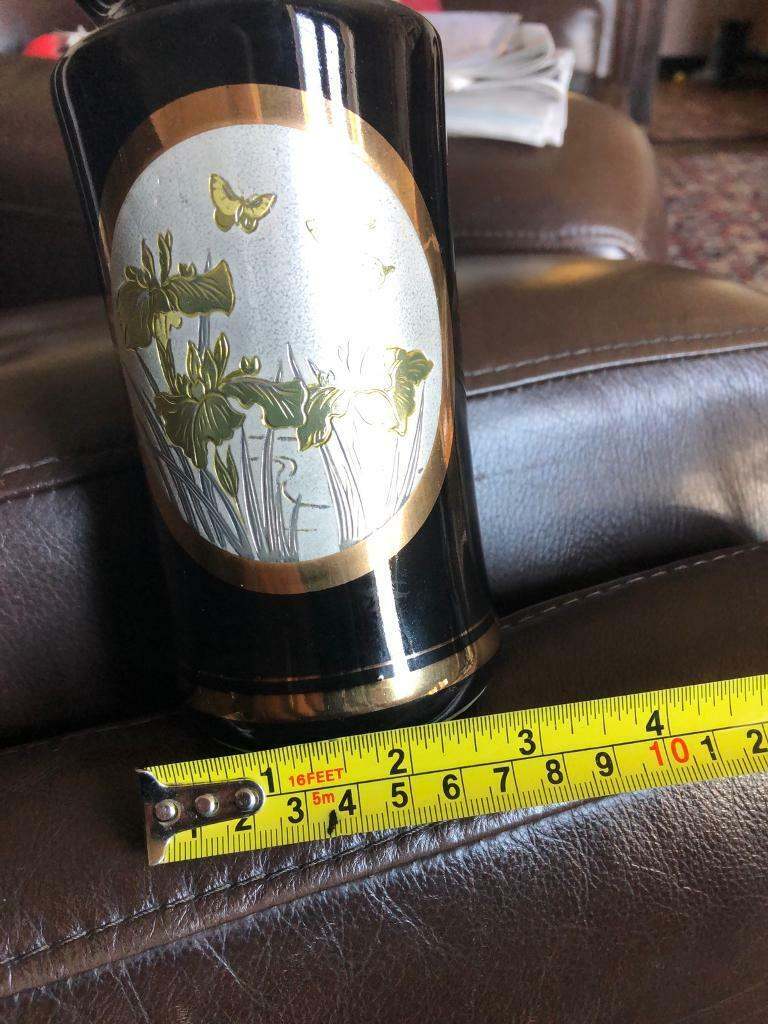 Hi for sale one black and gold Japanese chokin vase in good condition 24kt gold plated photos shows sizes make good gift thanks for looking 👍