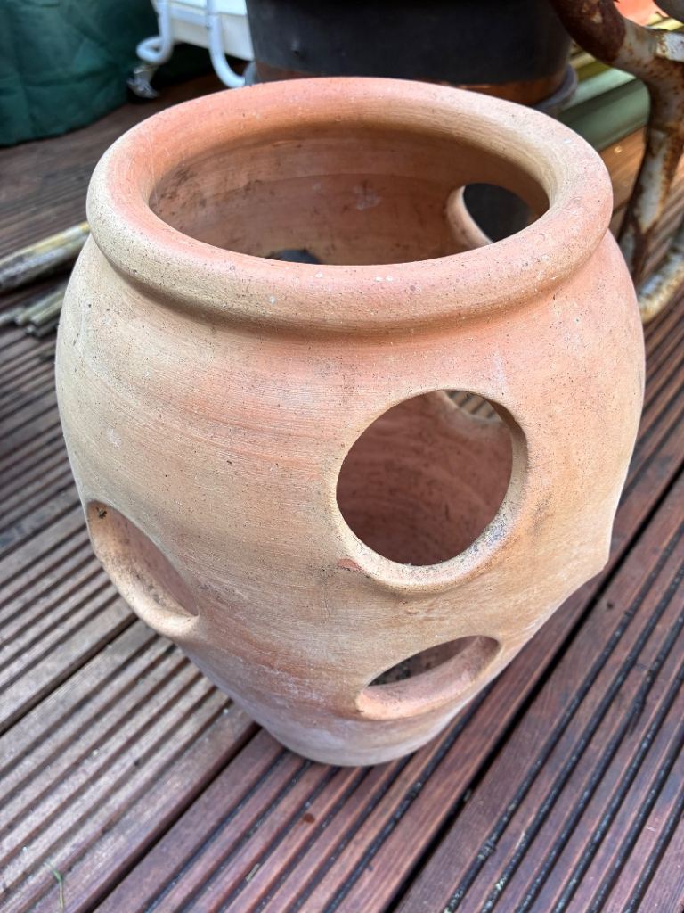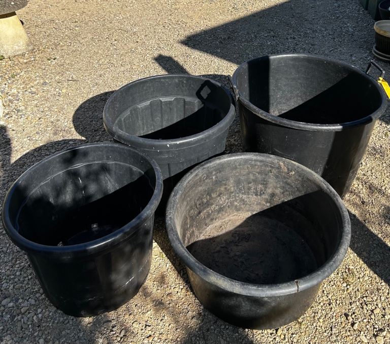 2 black garden planters holes around ideal for bedding plants..I will clean b4 collection
