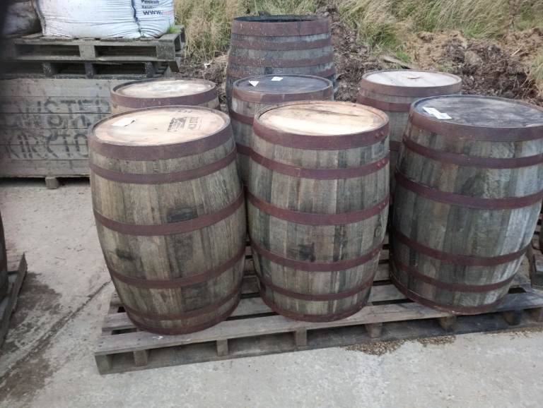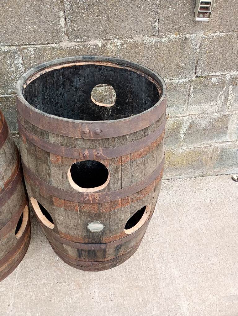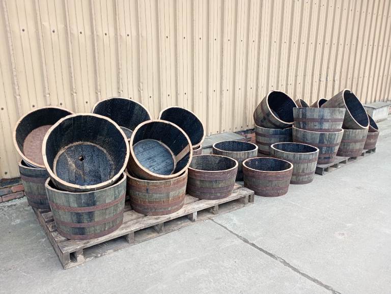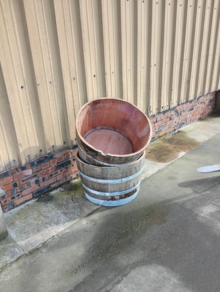 Clean, sturdy oak planters. I have two sizes: H35-37cm, W58cm, and H45cm, W63cm. Price is only £15, unlimited quantities. Collection is available almost any time. I can also deliver. Send me the post code and I'll give you the shipping price. A full barrel costs £30. I also have barrels with galvanized hoops for £50 (half barrel £25). Offer valid until June 15th.