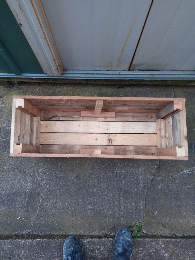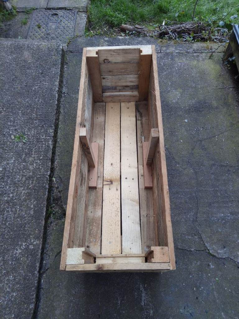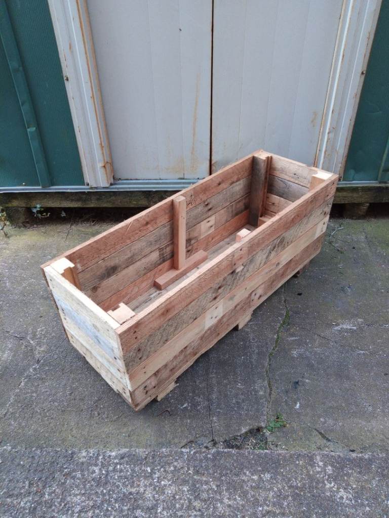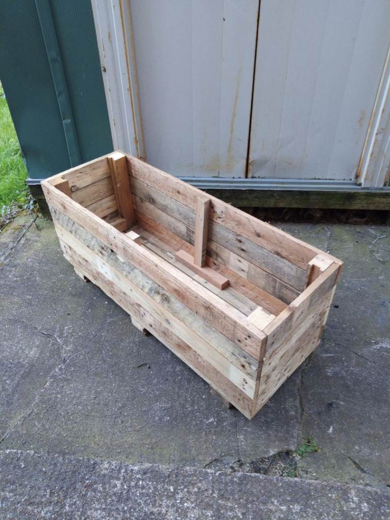 Handmade wooden planter made from reclaimed pallet wood. The dimensions are approximately 90cm long 30cm wide and overall height of 36cm. I have 4 available evening and weekend collections only.