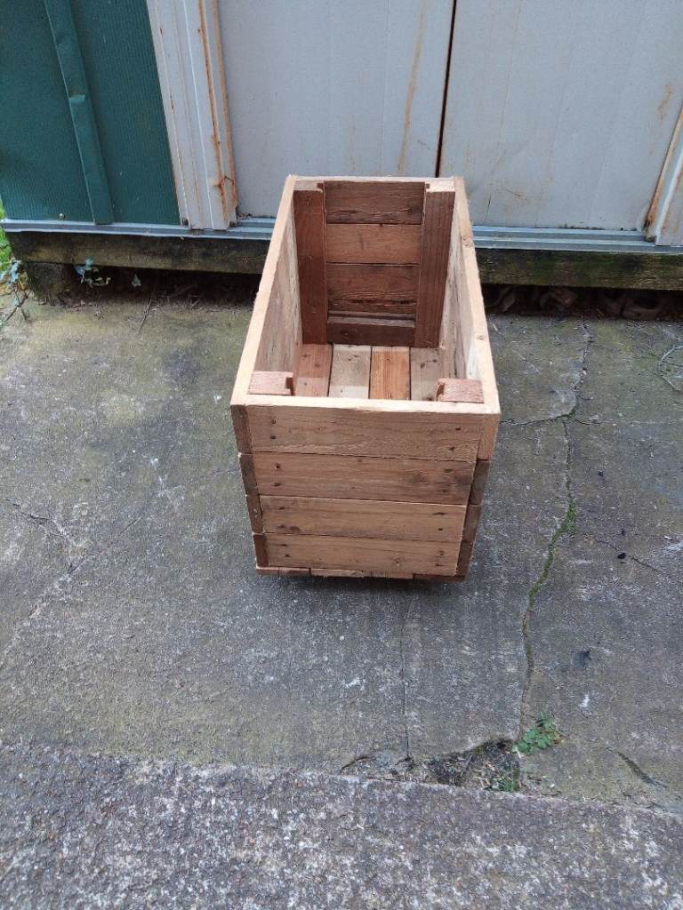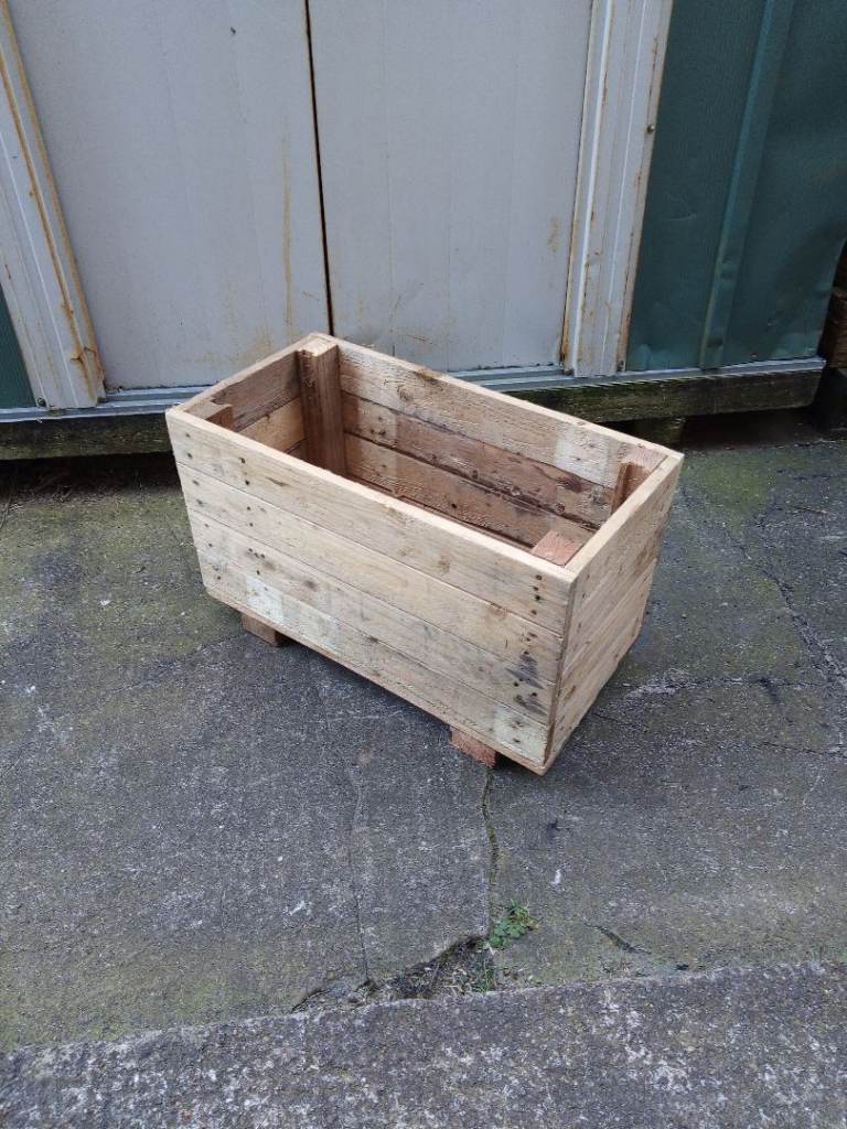 Handmade wooden planter made from reclaimed pallet wood. The dimensions are approximately 60cm long 30cm wide and overall height of 36cm. I have 4 available. Evening and weekend collections only.