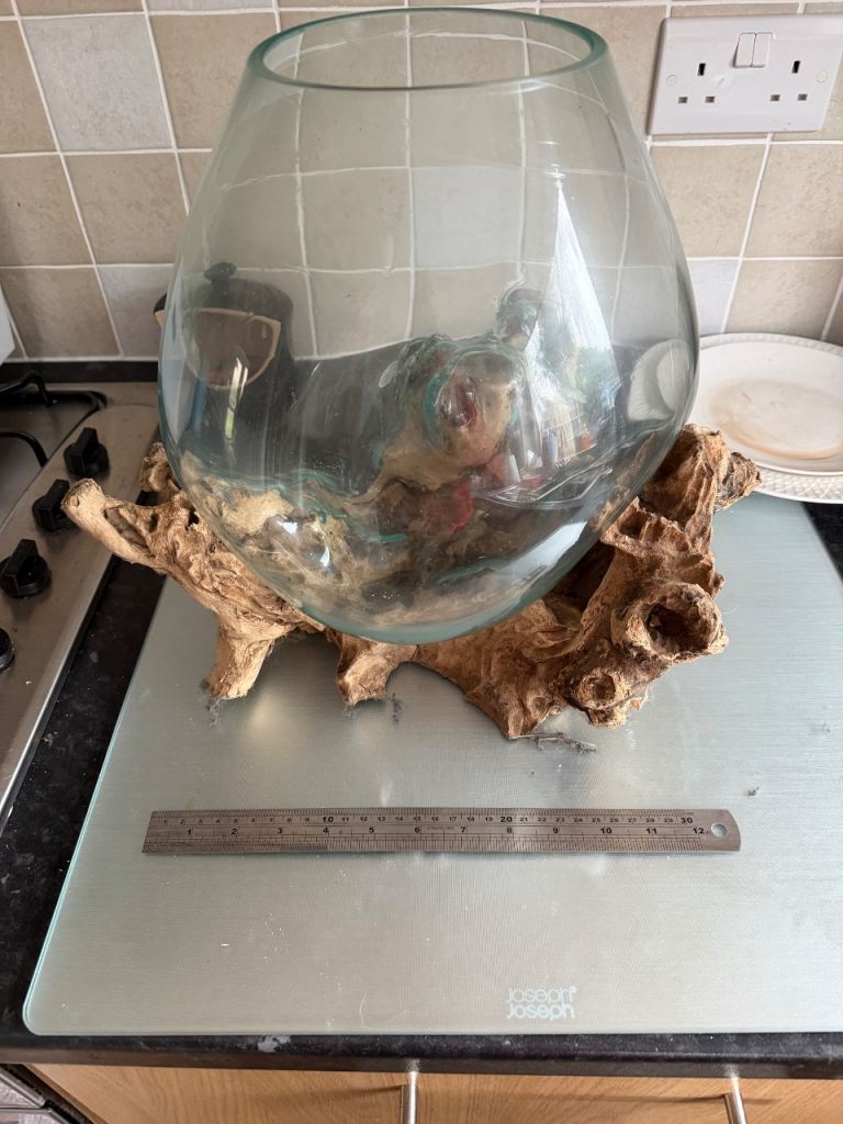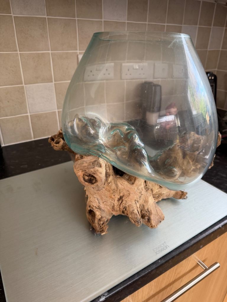 Large Glass Terrarium (melted glass on driftwood)