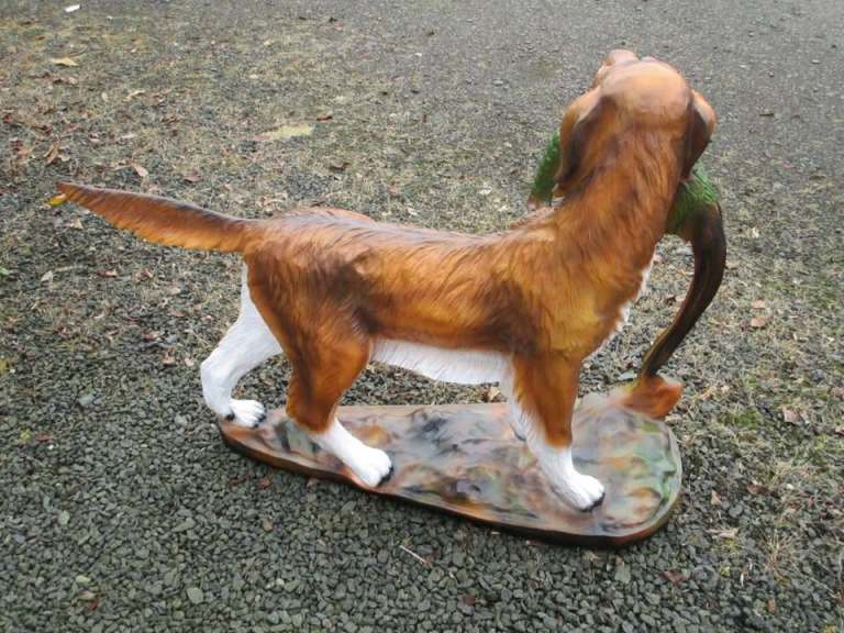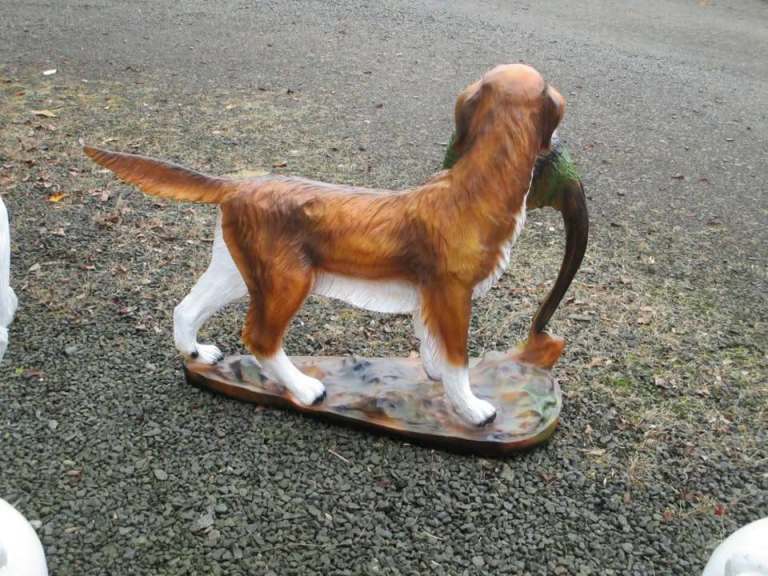A large hunting setter statue made of fibreglass. It is 34 inches tall and 47 inches long.