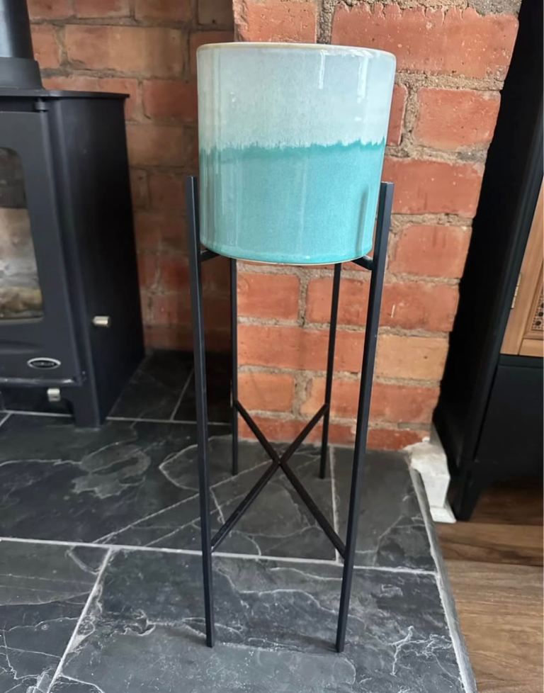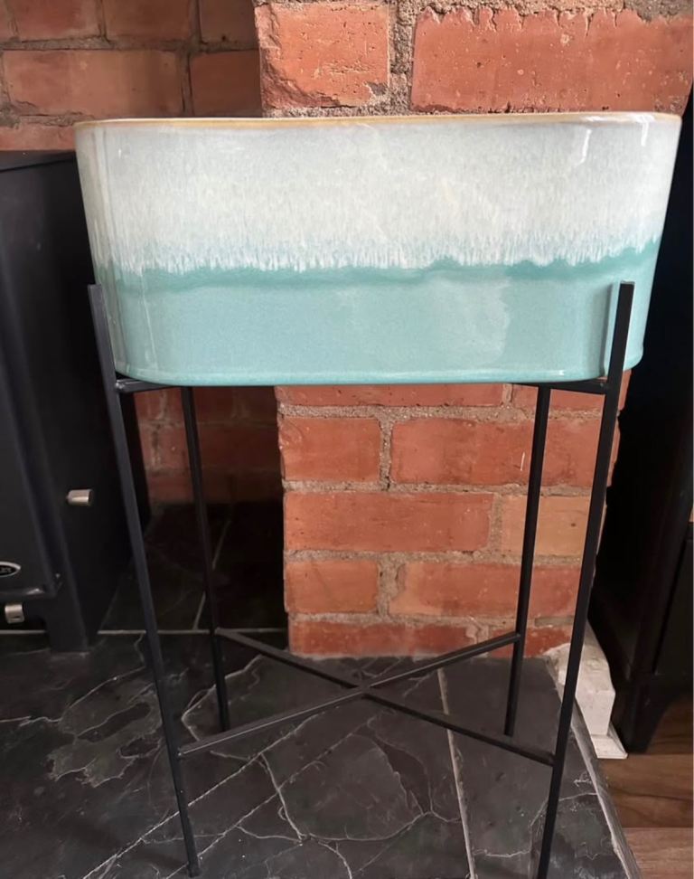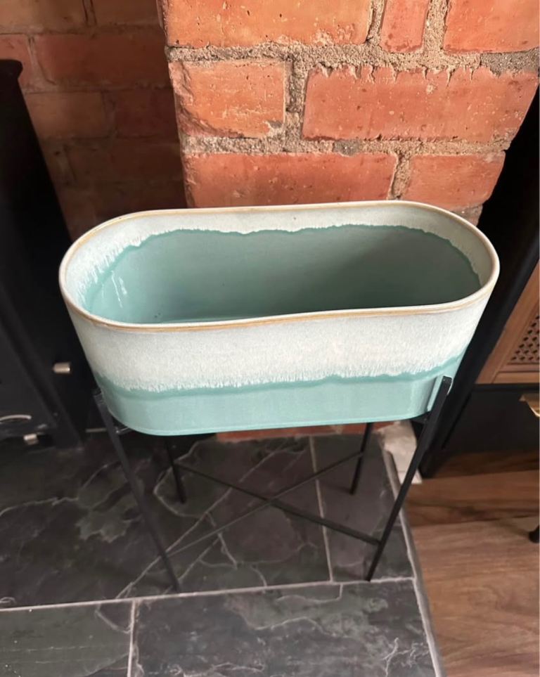 New Oliver Bonas Ceramic and Metal Plant Stand Planter 59cmx15cmx35cm