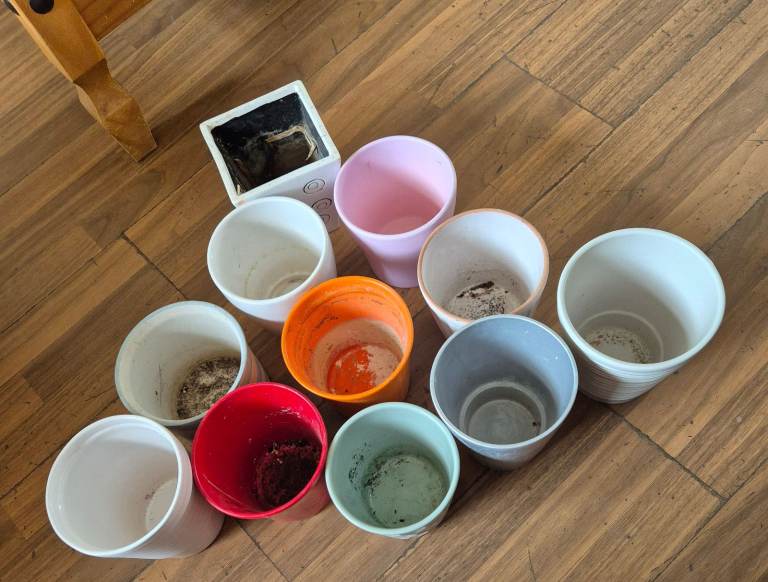 Jot lot large ceramic plant 10x 5.25" and 5x 5" pots been cleaned