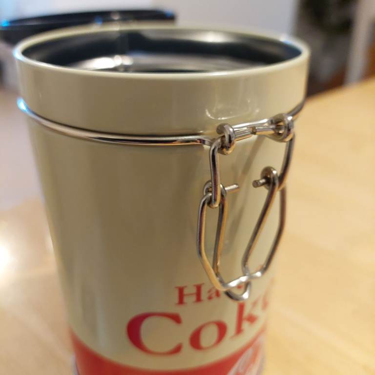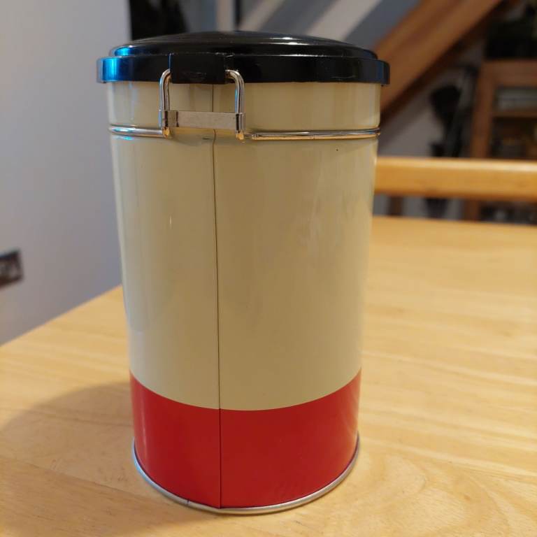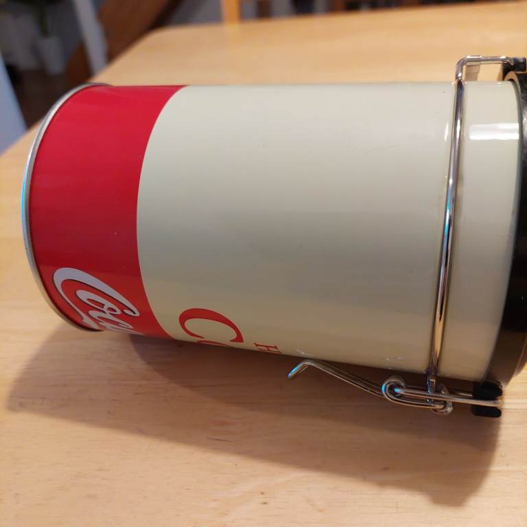 Retro Coca-Cola storage tin have a coke on front in cream red and black new never used.